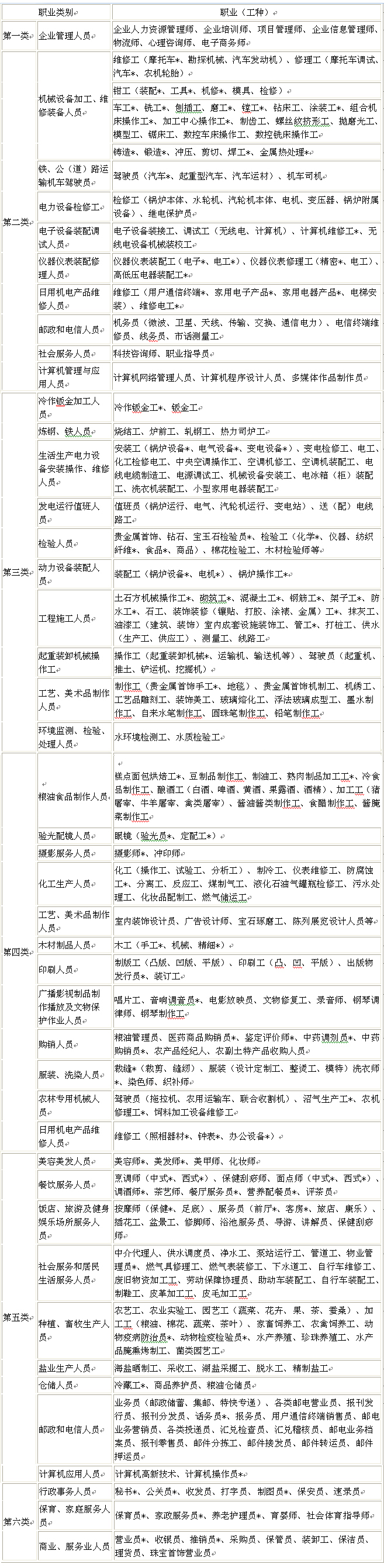 江苏省职业(工种)分类(第一批)