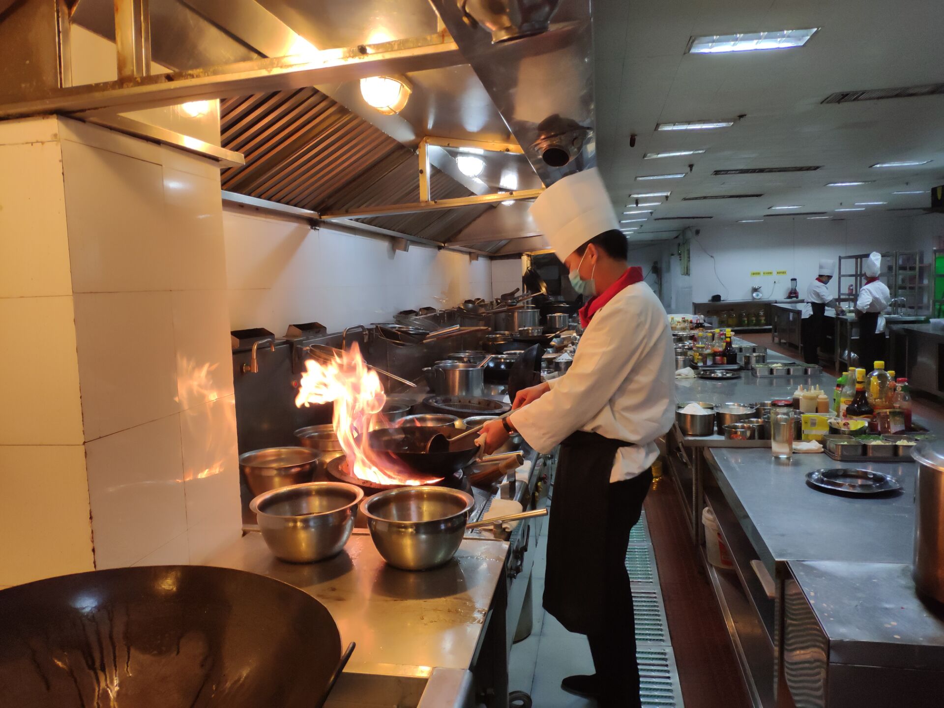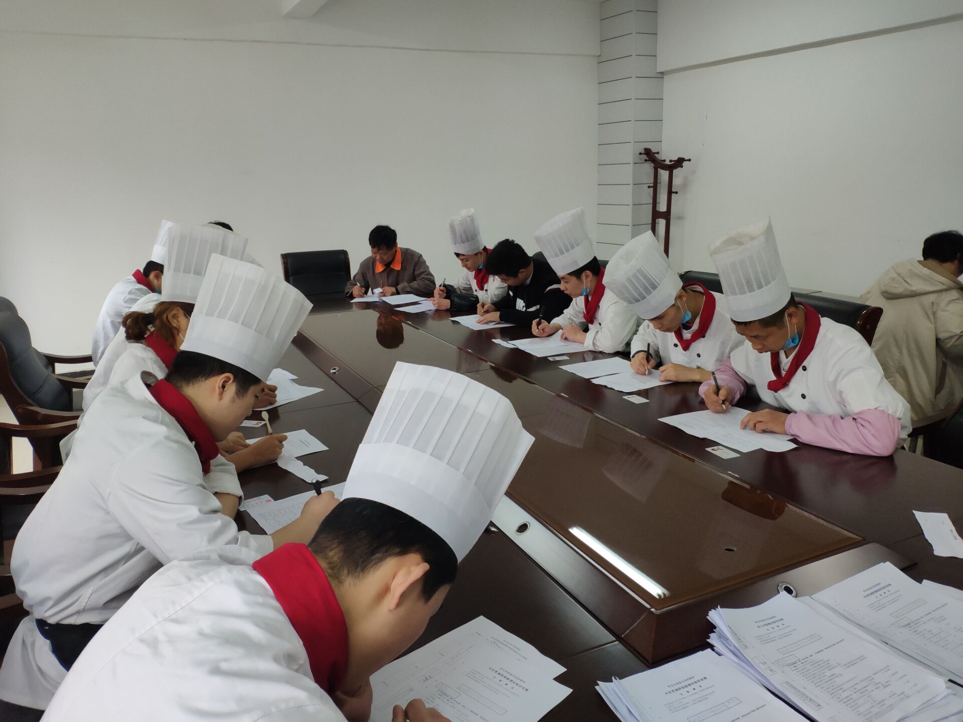 本次中式烹调师职业技能鉴定考试分理论和实操两个部分进行。考生经过信息核查确认后,入场参加考试。理论知识采用百分制闭卷答题的形式考试;实际操作则是现场操作,需要在规定时间内利用指定食材完成冷热菜的制作。在紧张而忙碌的实操考试现场,厨师们根据平时技能经验积累,将培训期间学习到的烹饪技巧发挥得淋漓尽致,制作出了一道道色香味俱全的菜肴。