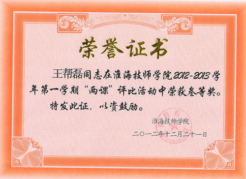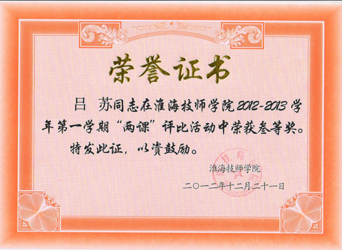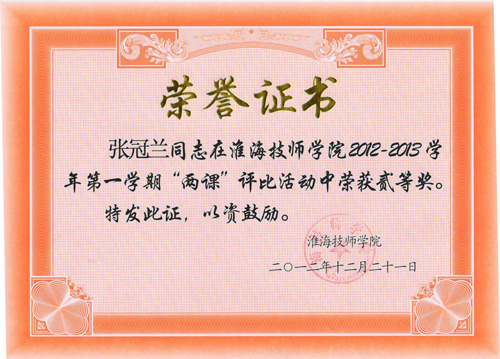 2012年院两课评比获奖证书