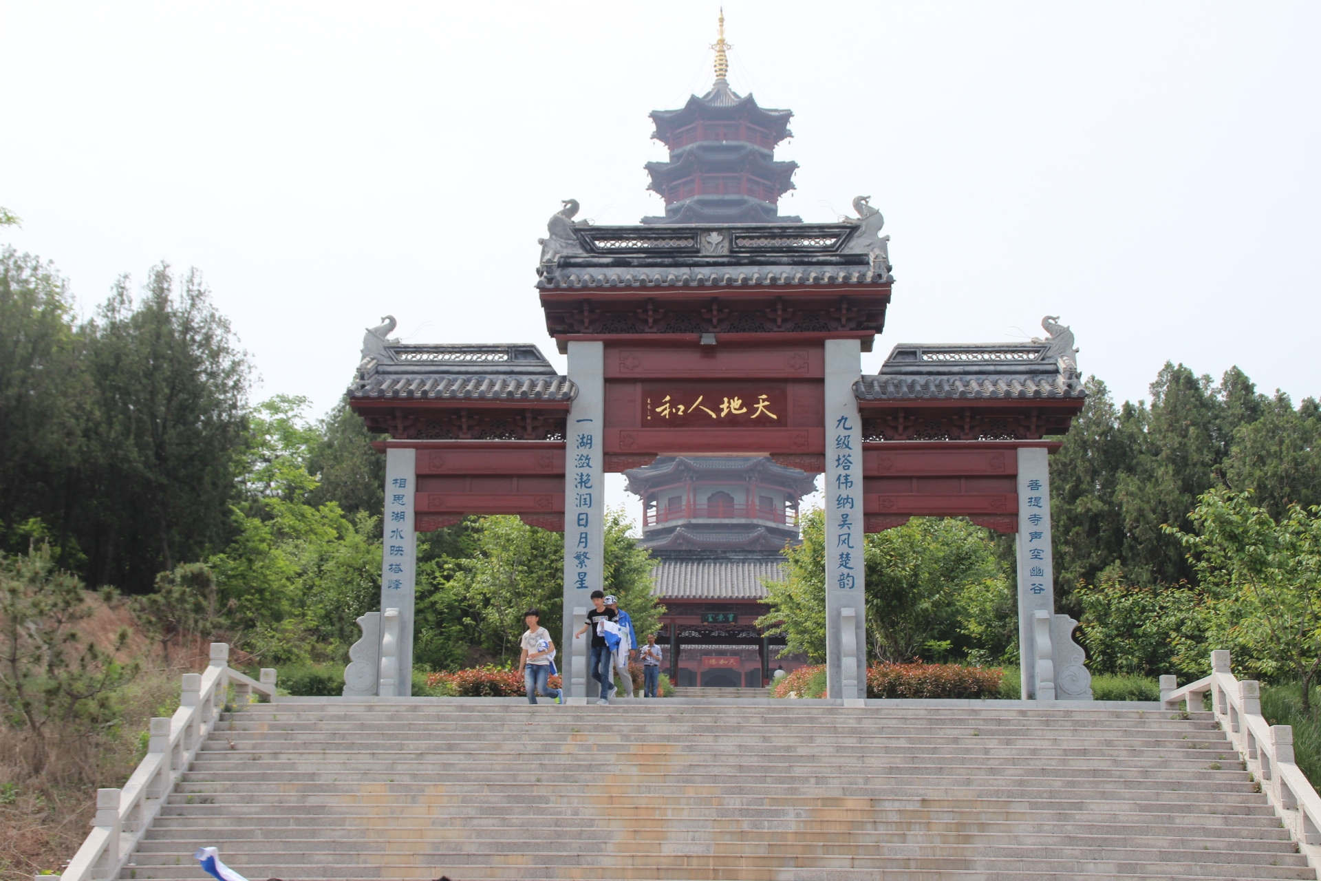 慢步在幽静的小道上,不知不觉中到了天和塔前。宝塔九层之高,是宿迁市第一座高塔,是宿迁市标志性建筑之一;宝塔周围,绿荫环绕,极具中国传统文化底蕴;师生们拾级而上,登上塔座一层,环顾四周,湖光山色,美不胜收;师生们纷纷拿出手机塔前留影纪念。