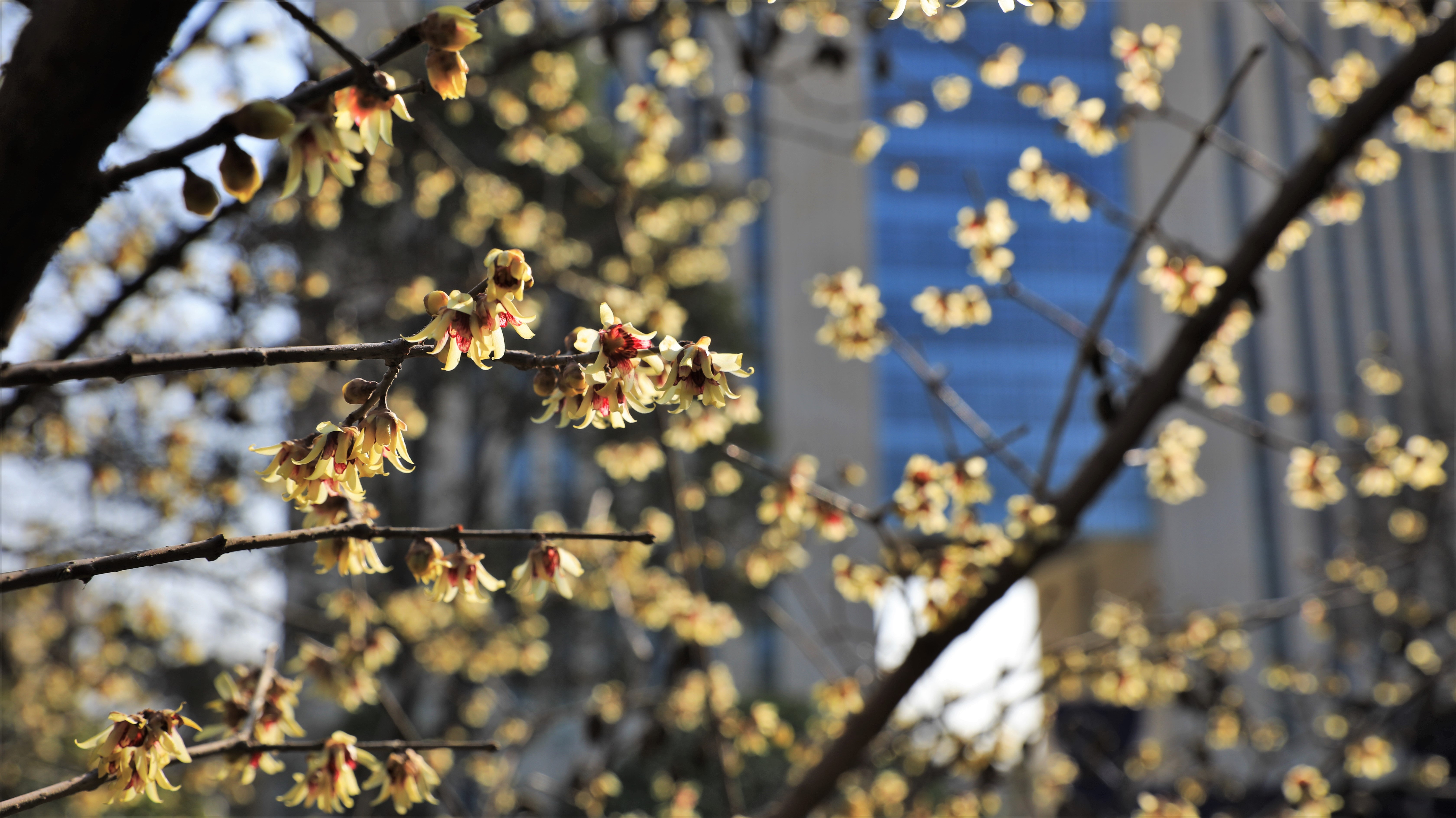 图书馆四周以及汽车实训基地东侧的几株腊梅都是又高又密的老桩了,我又跑了整个校园,发现机器人广场上也植下了一些新桩。新植的腊梅开得不够爽利,现下仍是只结了些圆鼓鼓的花苞,没有充分舒展开身躯,让人觉得仿佛有些遗憾。相信假以时日,它们也能够根茂枝繁,每到腊月也能营造出悠远的香阵。