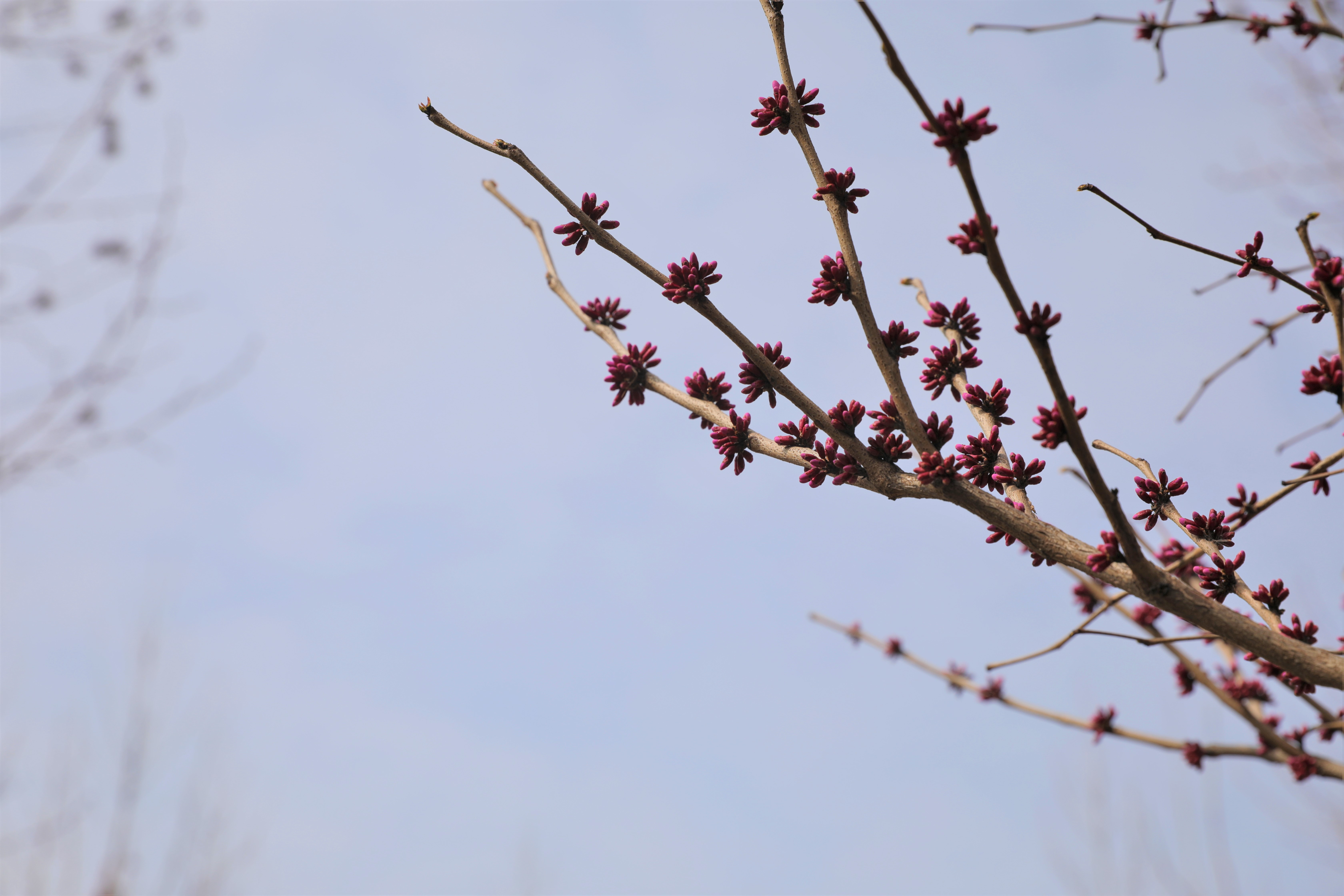 汽车实训基地外的紫荆,枝头稍显冷清,开出的花朵现下仅有爆米粒一般大小,但是那份紫色也给淮海的春天添上了恰到好处的一笔。