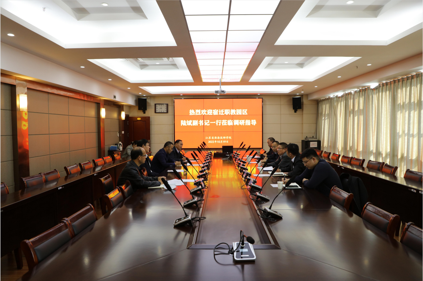 10月19日,宿迁职教园区党委副书记、总顾问陆斌带领相关负责人一行5人到我院考察调研。学院党委书记、院长李军,副院长朱宇亮及相关部门负责人陪同调研。