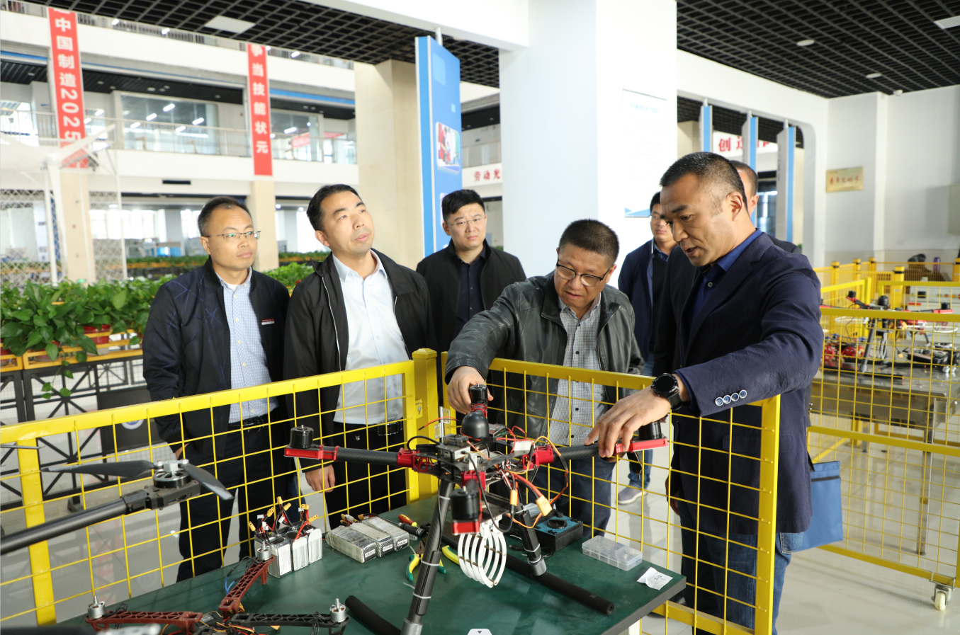 陆斌听取了我院公共实训基地建设使用情况和发展需求,参观走访了学院校史馆、高铁乘务实训中心、酿酒工作室、天岗锣鼓工作室、烙书烙画工作室、泥塑工作室、剪纸艺术工作室、京东电商产业学院、数控加工实训中心、机械加工实训中心、国家级技能大师工作室、省级技能大师工作室、中德学院、苏驰汽车产业学院、世界技能大赛汽车喷漆项目中国集训基地、国家产教融合项目机器人实训中心、光伏产业学院等地,对学院多年来为地方高技能人才培养作出的贡献给予高度赞扬,希望学院加大实训基地建设力度,优化师资队伍结构,以重点专业建设为龙头,引领和带动全市相关专业和专业群共同发展,实现专业建设整体出特色、上水平,为地方经济社会培养出更多更好的实用型技能人才。