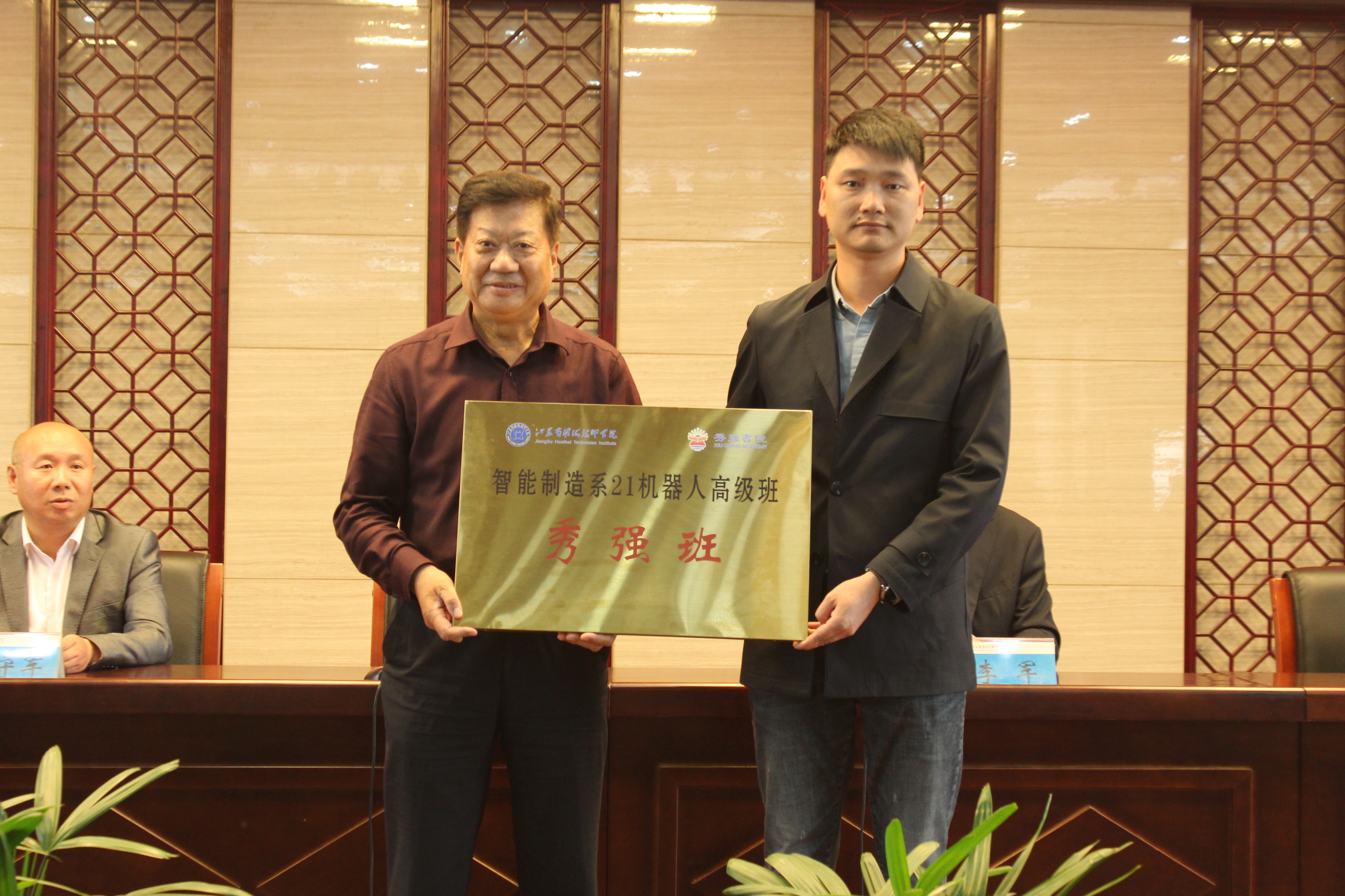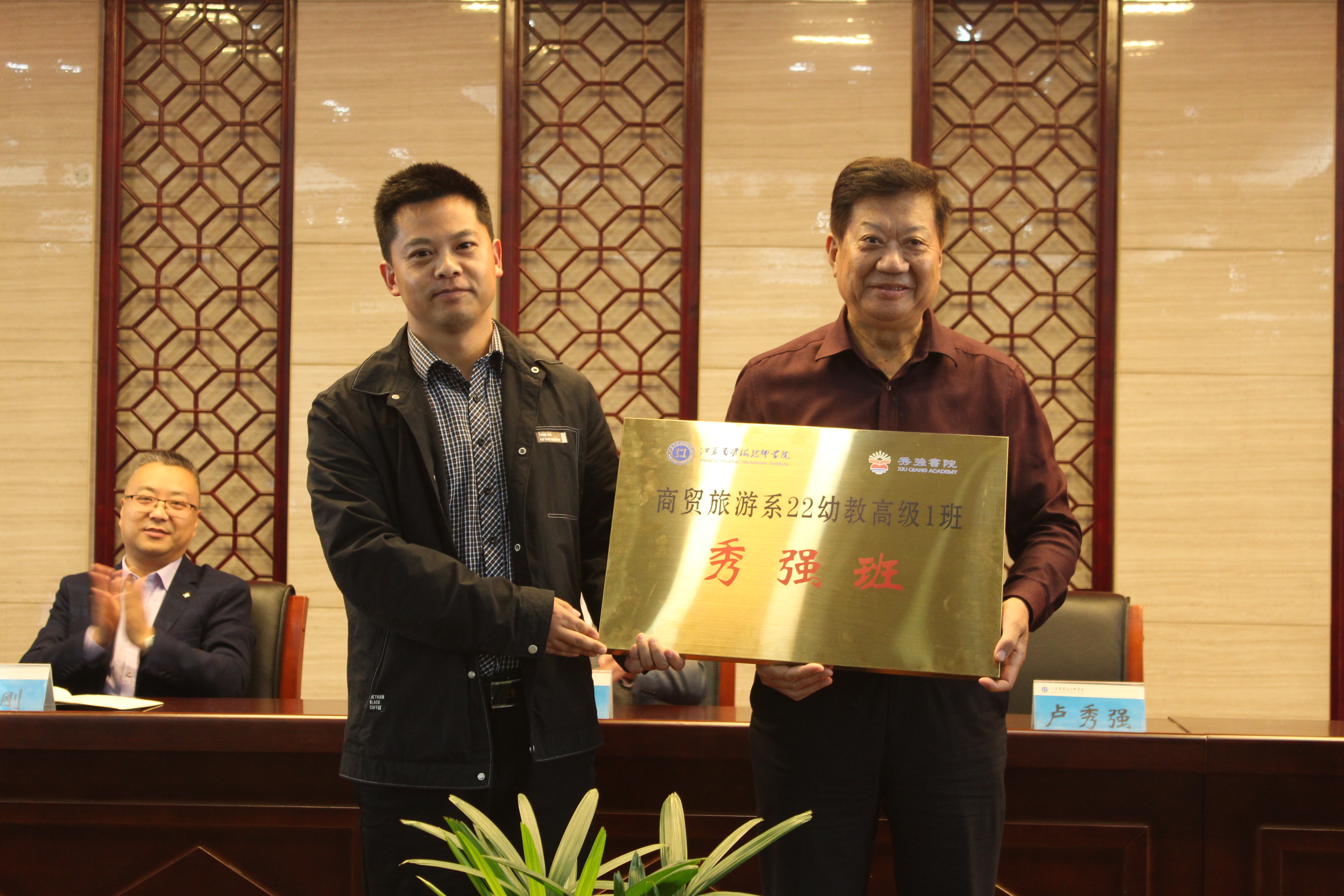 请进来:成立2个“秀强班”。通过前期多次的深入探讨与交流,校企双方达成共识,将先期成立2个“秀强班”,共同探索协同育人的新模式,并最终确定将商贸旅游系22幼教高级班和智能制造系21机器人高级班冠名为“秀强班”。卢秀强为学院两个“秀强班”进行授牌。两位“秀强班”班主任分别发言,表示一定建设好“秀强班”,带领学生树立远大目标,规范自身行为,培养良好习惯,珍惜“秀强班”的荣誉,争做全面优秀的班集体,培养德艺周厚的好工匠。