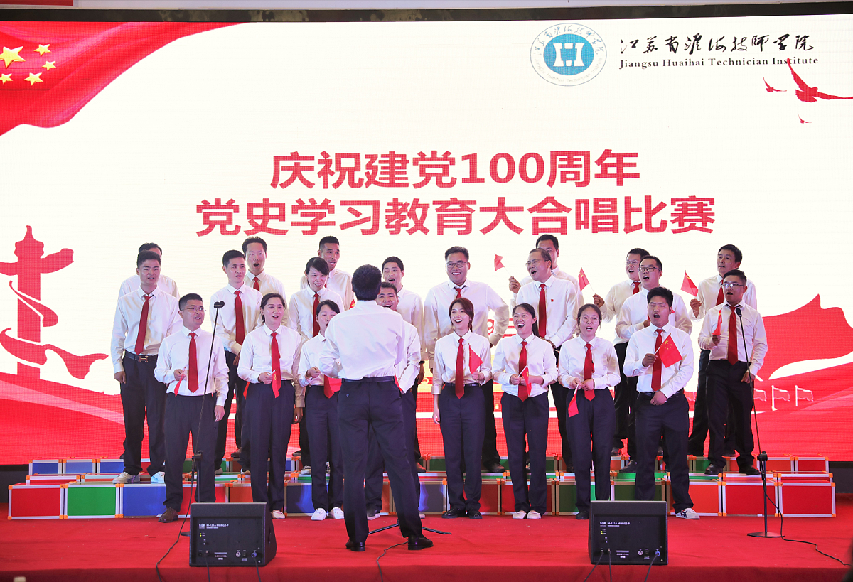 比赛在商贸服务系全体教师饱含深情的《我爱你,中国》中拉开帷幕,9支代表队依次登场,把对党、对国家的热爱融入到激情歌声中。《走向复兴》《国家》《我们走在大路上》《放下三棒鼓,扛起红缨枪》《我和我的祖国》等一首首脍炙人口的红色歌曲,一句句对党和国家的深情告白,唱出了淮海人不懈奋斗的姿态,唱出了听党话、感党恩、跟党走的时代主旋律,展示了学院广大党员干部职工在党的领导下凝心聚力、砥砺前行的精神风貌,抒发了对党、对祖国的美好祝福,以嘹亮的歌声向中国共产党成立100周年献礼。