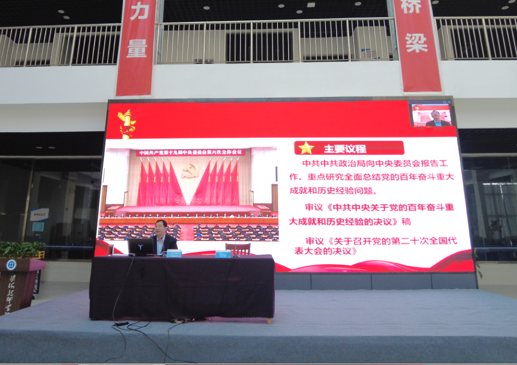 为深入领悟党的十九届六中全会精神,进一步领会和把握党的百年成就给予我们的重大启示和宝贵经验,12月10日上午,学习贯彻党的十九届六中全会精神市委宣讲团走进学院,开展学习贯彻党的十九届六中全会精神宣讲。市委宣讲团成员、学院党委书记、院长张兵营作专题宣讲。学院党委副书记徐守军主持宣讲会,全体教职工聆听宣讲。