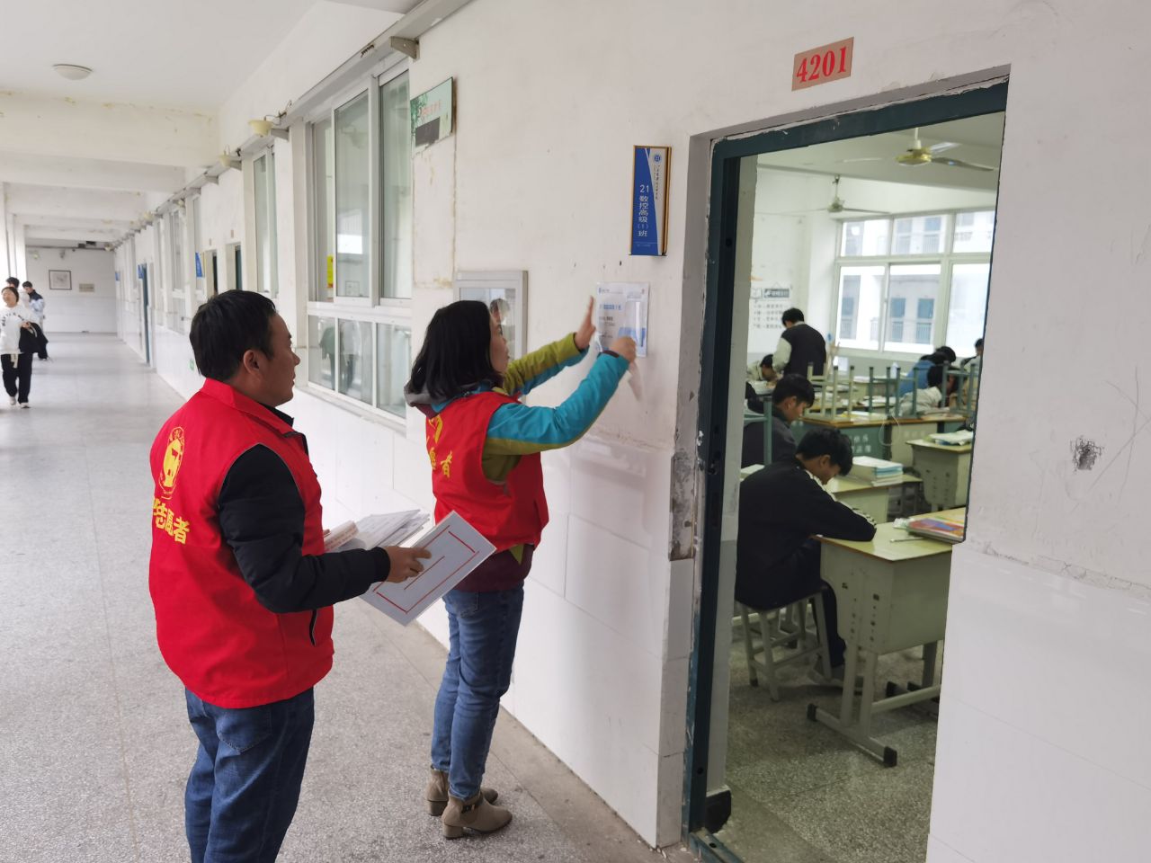 为了让同学们在一个干净整洁的环境下学习,本次活动重点对教学区域卫生死角进行清理,并对文化氛围进行更新更换。支部党员分成两组分别进行卫生清理和文化氛围布置,特别是对各班级的标识牌进行更换。更换后的标识牌上标有班级及班主任信息,并配有教师工牌,方便系部教学巡查。