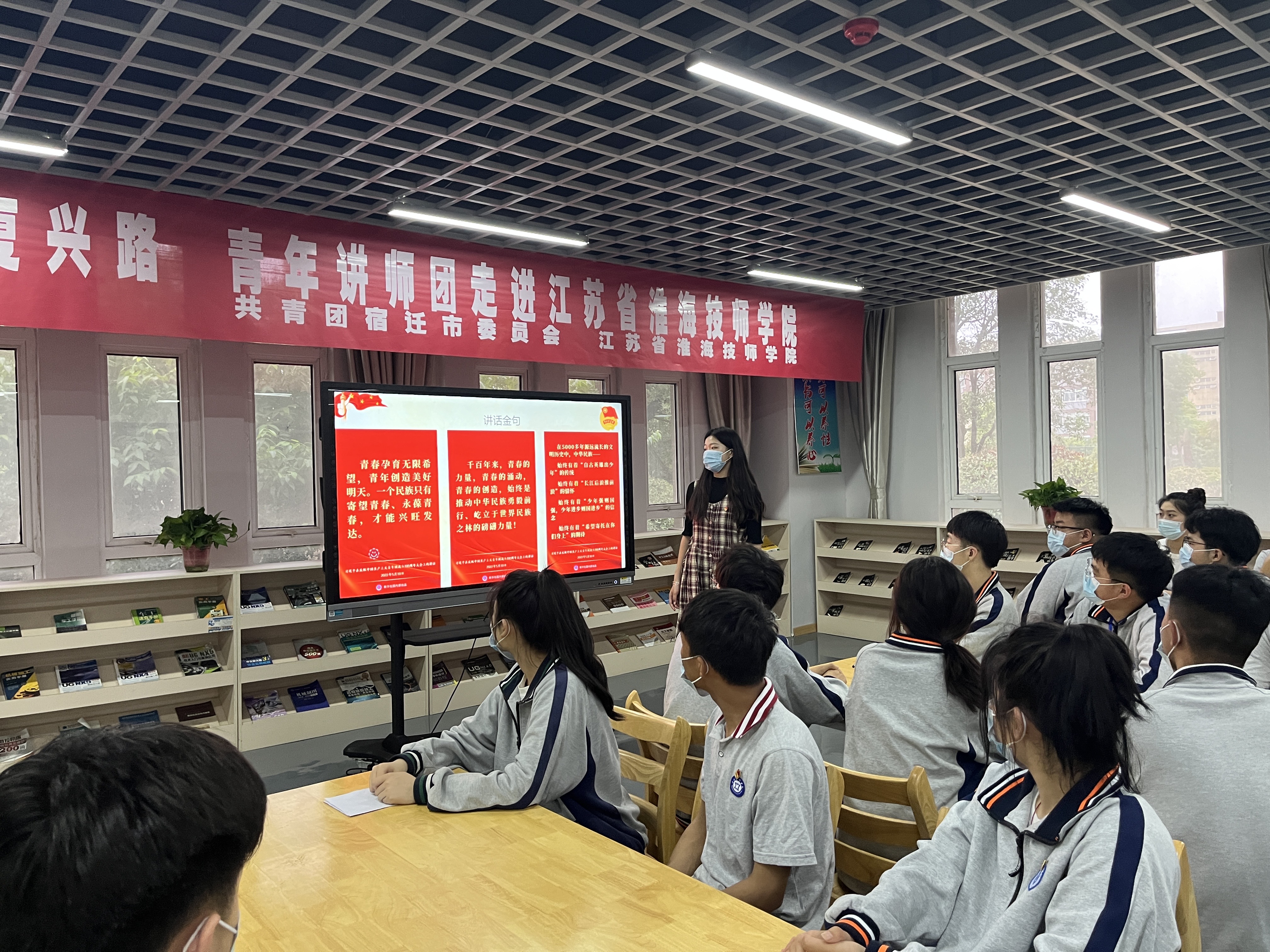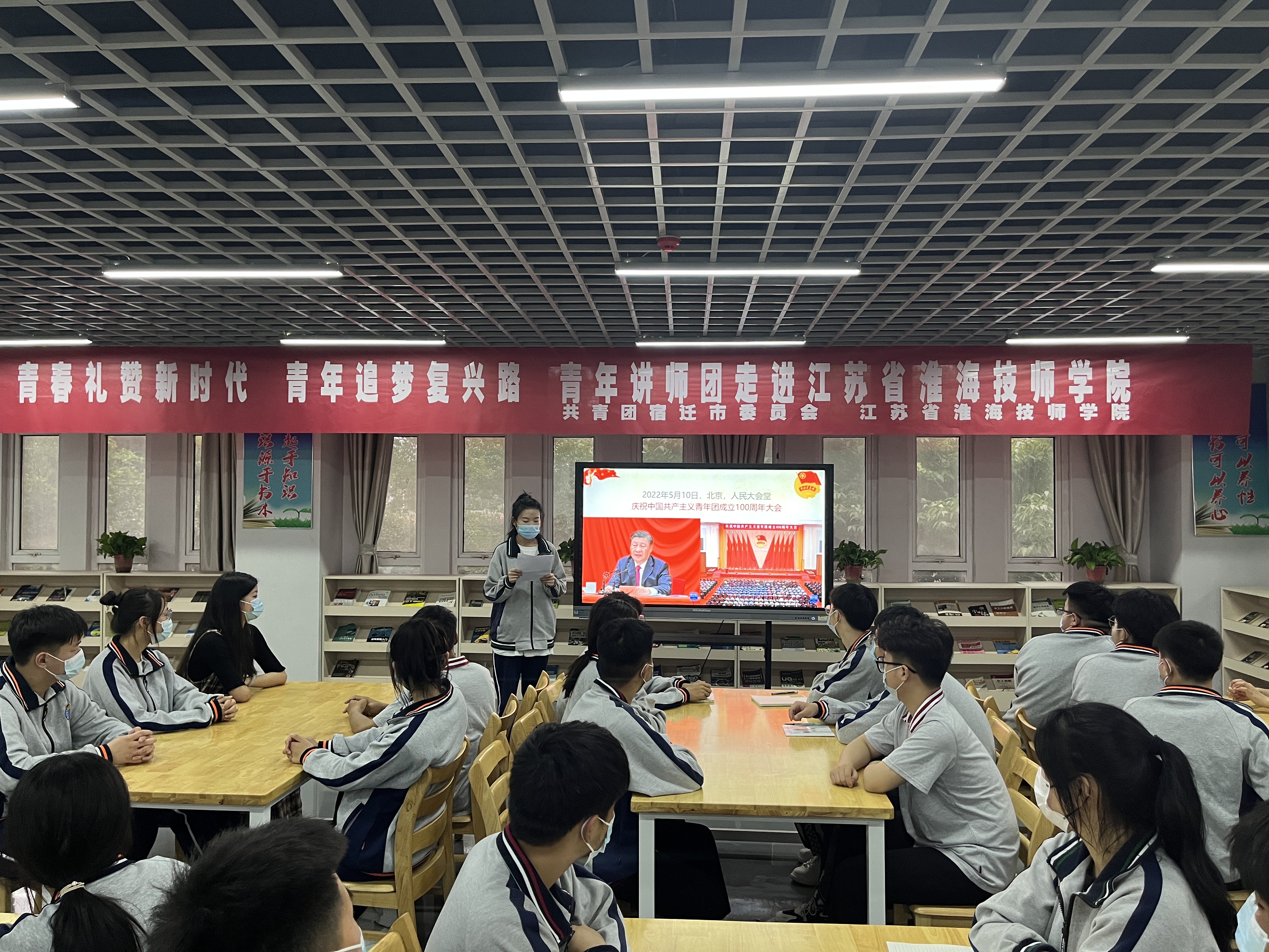 为深入学习贯彻习近平总书记在庆祝中国共产主义青年团成立100周年大会上的重要讲话精神,进一步在学院青年学生中营造矢志建功二十大、奋进新征程的浓厚氛围,5月25日晚,宿迁市青年讲师团走进学院,开展“青春礼赞新时代、青年追梦复兴路”宣讲活动。市青年讲师团成员、学院团委负责人魏燃作专题宣讲。来自各系部专业的40名团员代表现场聆听宣讲。