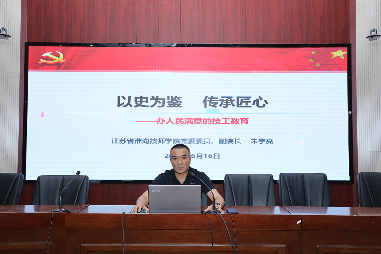 6月16日下午,学院党委委员、副院长朱宇亮以“以史为鉴,传承匠心,办人民满意的技工教育”为题为党政办、教务处、科研处和智能制造系等部门全体党员上了一堂精彩的专题党课。