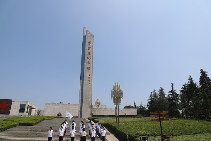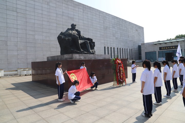 全体师生肃立在彭雪枫将军雕像前,由2名优秀共青团员敬献花篮并带领大家重温入团誓词,教育引导共青团员永葆共青团员的先进本色,发挥先锋模范作用;随后,全体人员参观雪枫纪念馆,接受爱国主义教育。纪念馆的讲解员向同学们讲解了彭雪枫将军的生平以及他感人的革命事迹,让大家领悟到要传承革命精神,不忘初心,砥砺前行;最后,大家一起观看了红色电影,深刻感受革命先辈们的拼搏奉献精神。