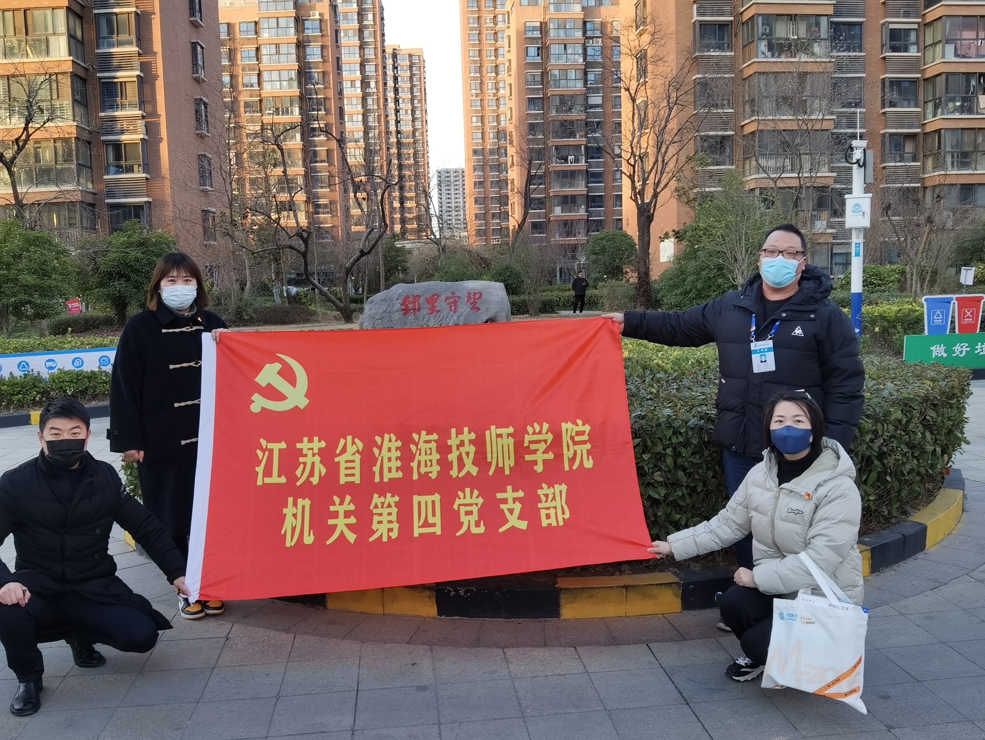 12月14日下午,机关第四党支部组织在校党员走进社区,开展党员志愿活动,向社区赠送防疫物资,宣讲疫情防控常识。