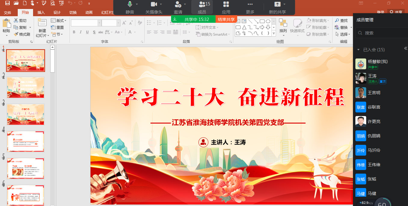 为深入学习宣传贯彻党的二十大精神,切实把支部全体党员的思想和行动统一到党的二十大精神上来,12月26日下午,机关第四党支部通过线上开展了“学习二十大 奋进新征程”专题宣讲活动。