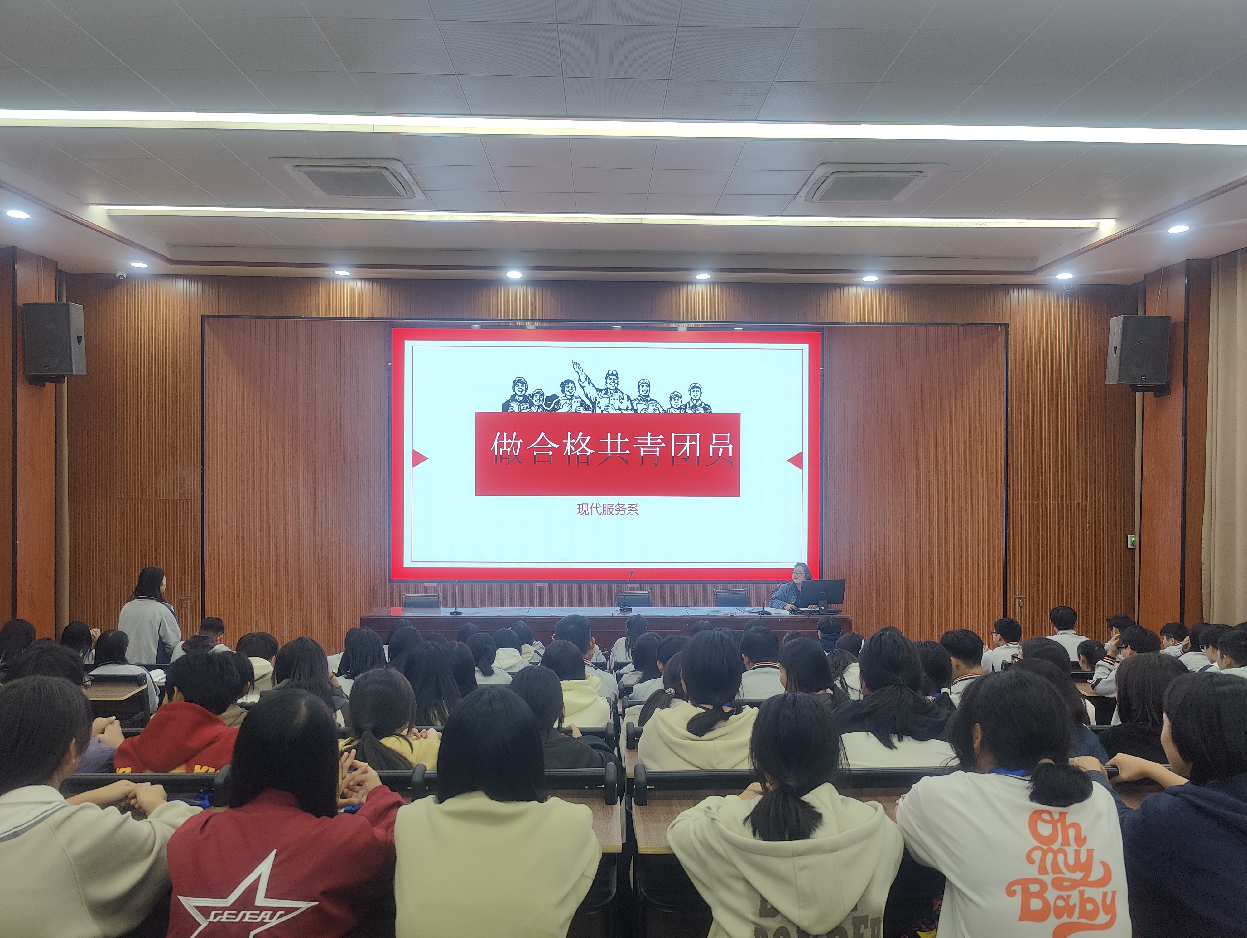 为持续加强我院广大团员青年政治理论学习,凝聚青春力量、彰显青年担当,10月24日晚,我院组织开展“做合格共青团员”主题团课活动。来自各系部的100余名团员青年参加学习。