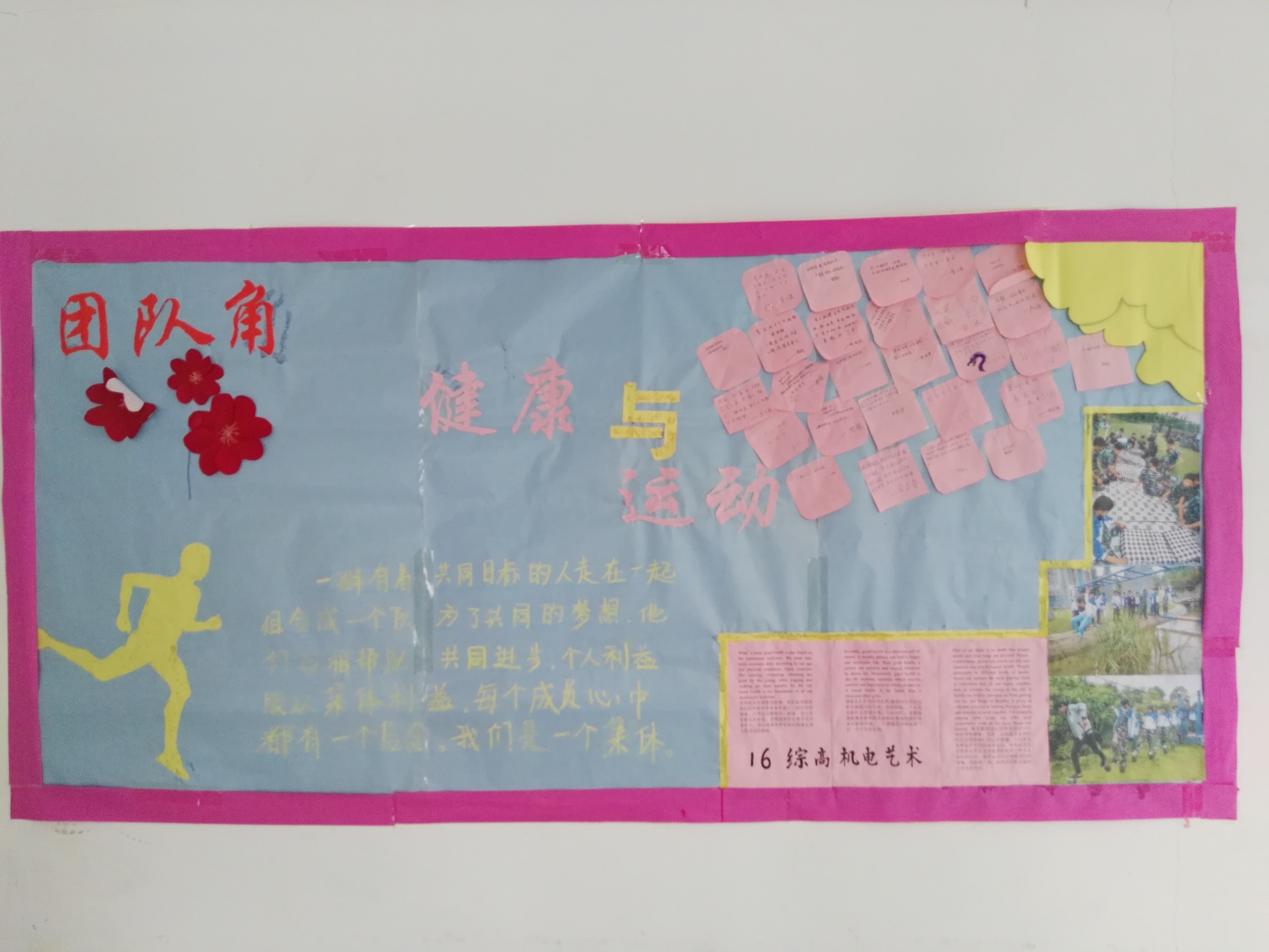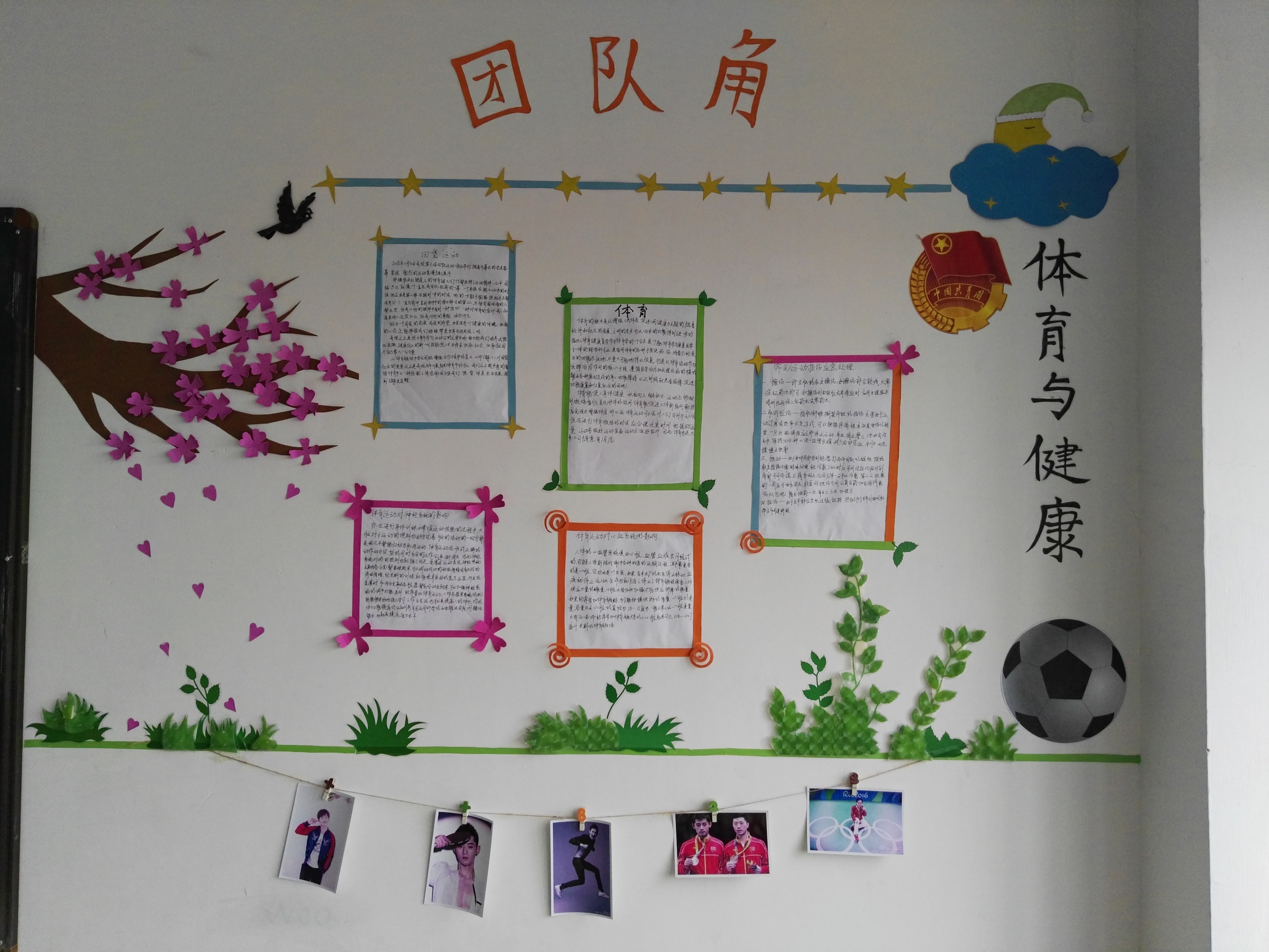 为了加强班级团支部建设,团委于本月初在各班级团支部组织开展“班级团队角”建设。本月主题为“运动、健康”,各班纷纷通过学生照片、学生作品展现班级团员学生的精神风貌。不少班级还将班级口号、班级公约纳入其中,丰富“团队角”的内容。