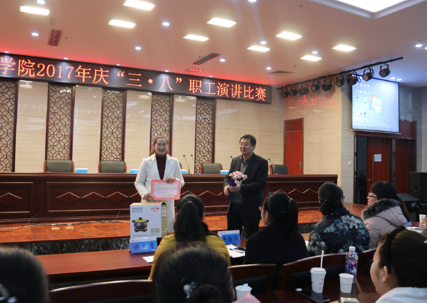 张兵营、陈元文和庄昌东为获奖选手颁奖。张院长向全院广大女教职工表示节日祝贺,向在学院发展道路上付出辛勤努力的所有女教职工表示衷心感谢。他希望大家保持昂扬进取的精神状态,进一步增强凝聚力、向心力和战斗力,争创事业、家庭双丰收,为学院的发展做出新的贡献。