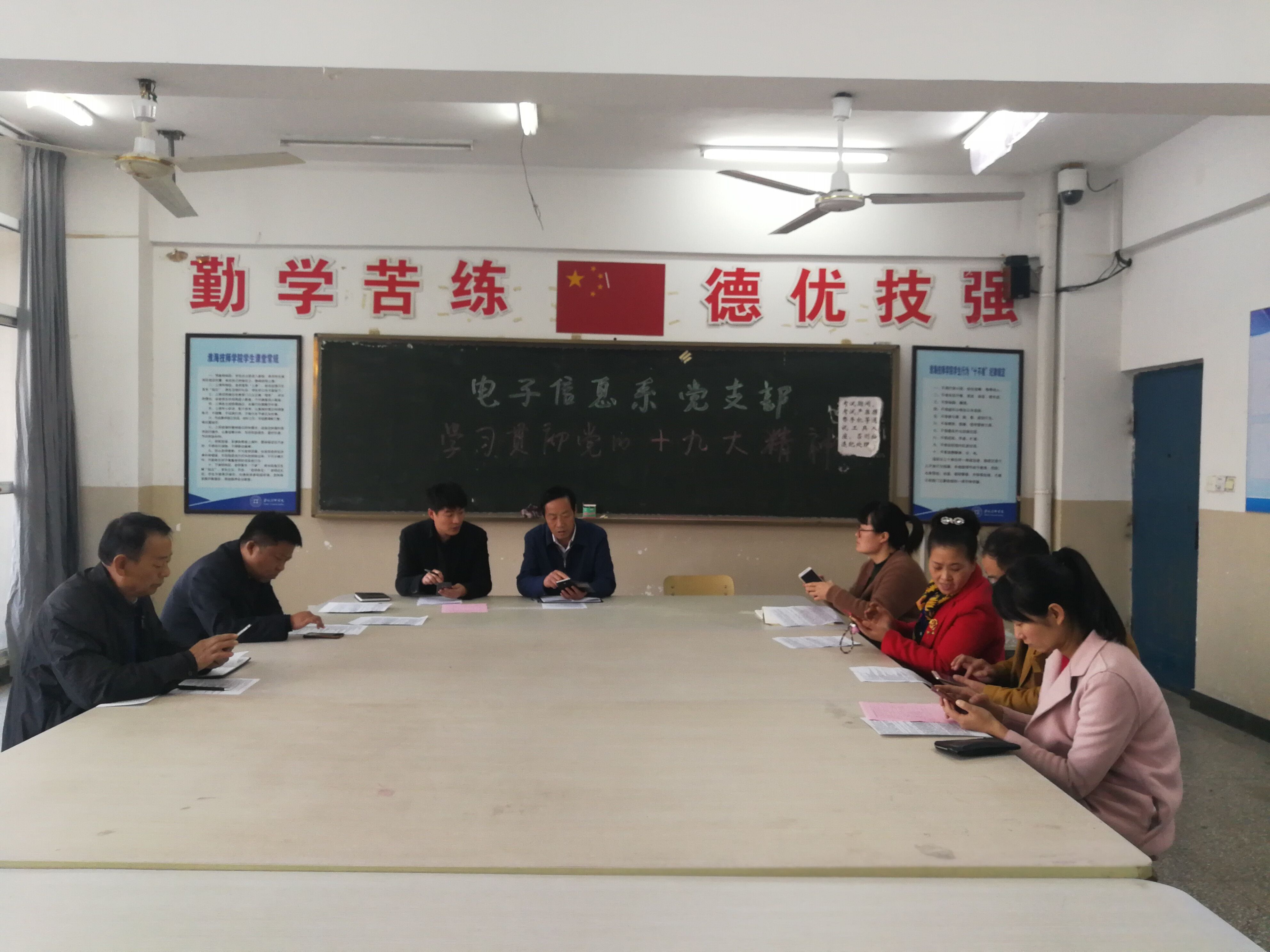 党的十九大闭幕以来,电子信息系党支部根据市委及院党委要求,以各种形式组织开展学习十九大会议精神,为进一步加强学习贯彻活动,11月9日晚,电子信息系党支部组织召开了十九大专题学习研讨会。学院党委委员、副院长王治到会并就学习贯彻十九大精神提出具体要求。
