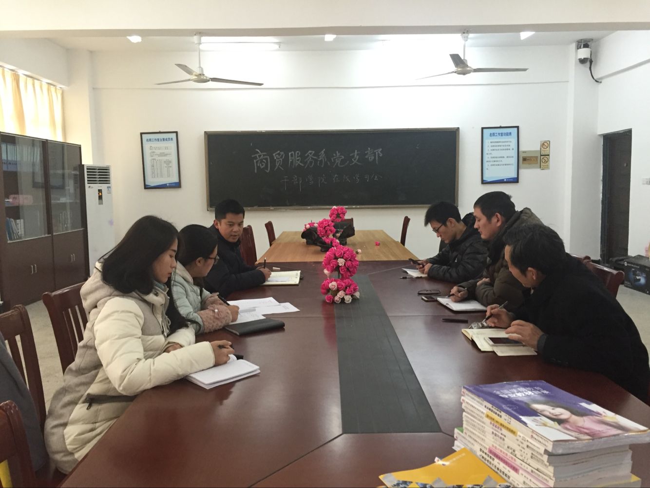 对于深入贯彻十九大精神,结合实际情况,梁春阳提出了要求:一是坚守岗位,做好本职工作。教师是一个良心职业,本职工作就是教书育人,就是要对学生、家长、社会负责。所有党员要站在第一线,做好榜样工作。近日雨雪天气对教学、学生管理工作影响较大,各位党员务必要坚守岗位,做好学院安排的各项任务,做好学生的安排工作,做好与家长沟通工作。二是热情饱满,作风优良。将饱满的热情投入到教学科研工作中去,时刻保持谦虚谨慎、勤奋刻苦工作的作风。发现工作中可以进步的空间,在勤奋中找到合适的方法寻求进步,不断保持一股强大的活力和不竭的动力,更好地为广大学生服务。