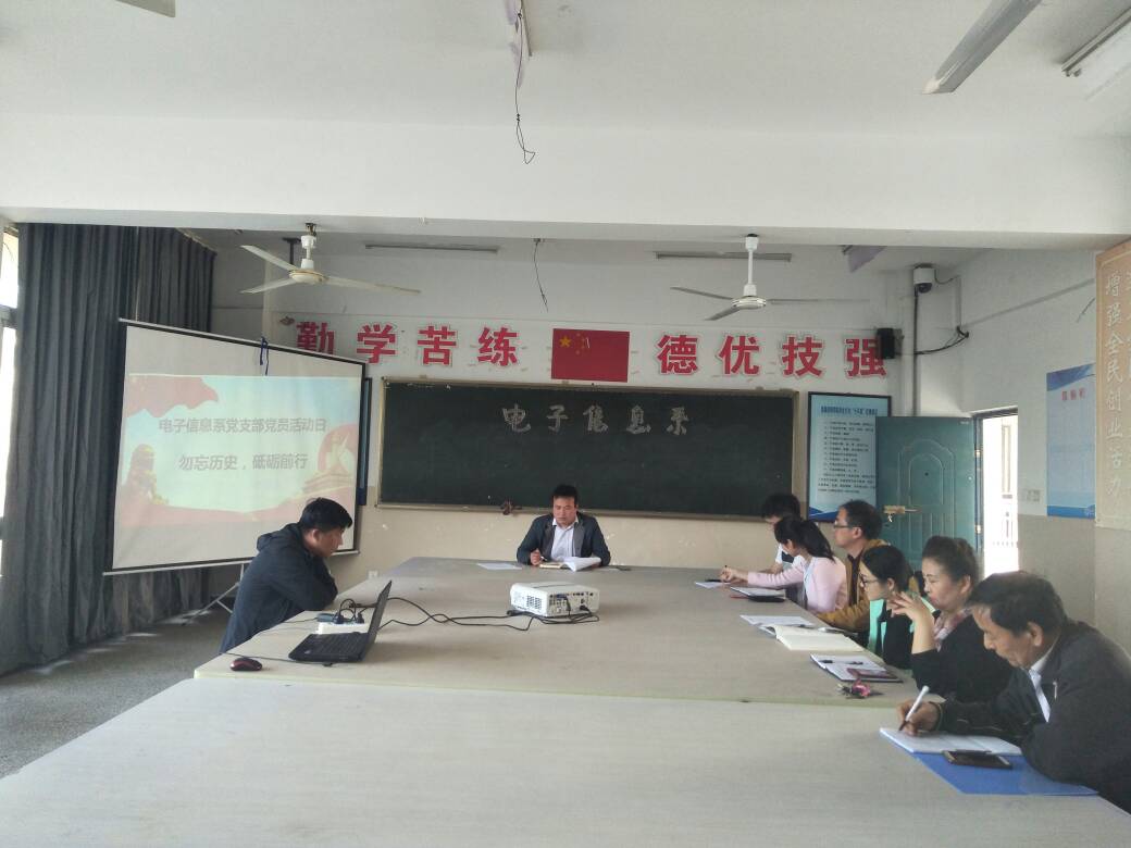 4月20日下午,电子信息系党支部在系部教学楼1102会议室开展四月份党员活动日活动。党支部书记夏垚主持活动。
