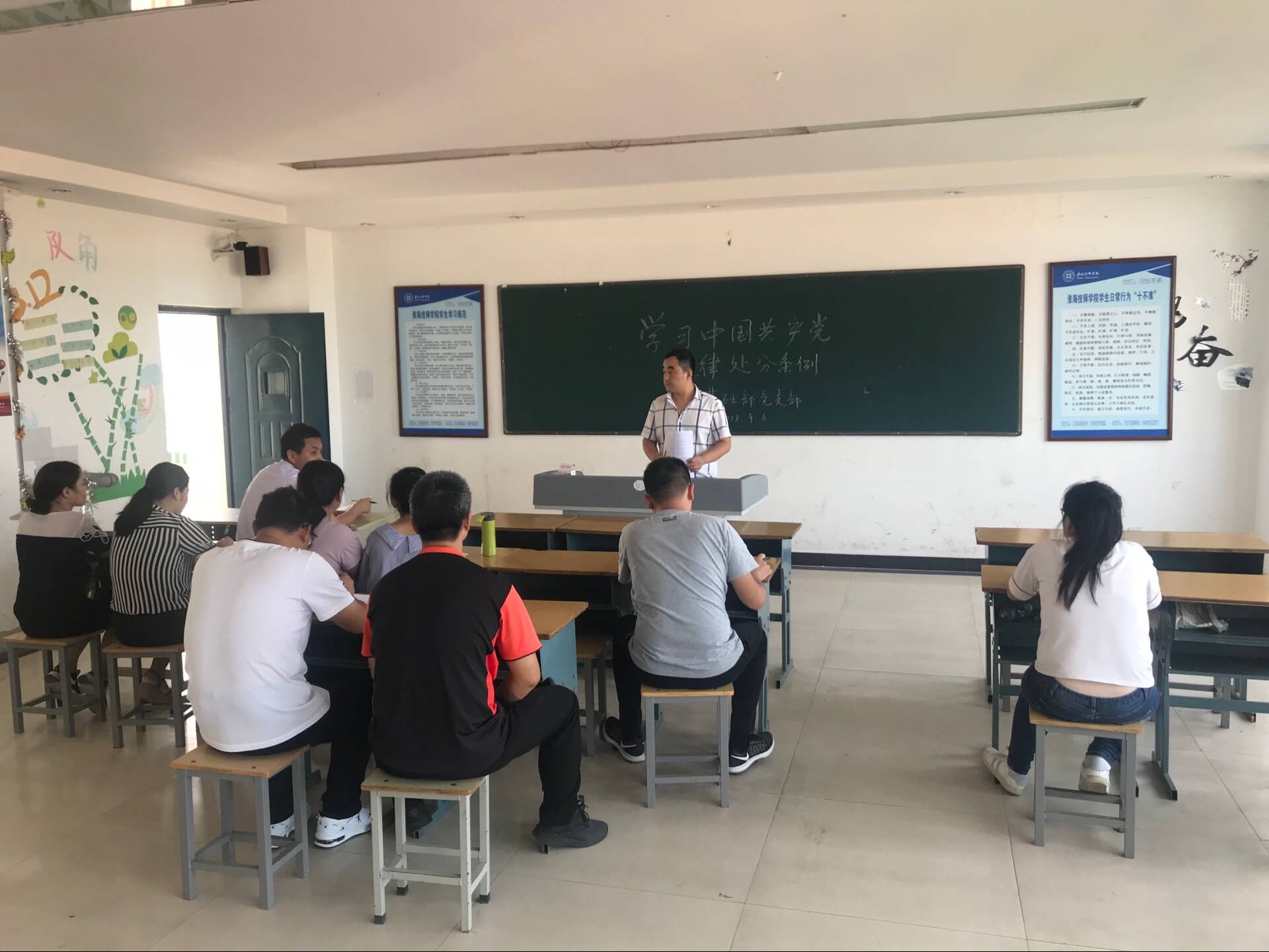 9月6日下午,基础部党支部组织全体党员集中学习新修订《中国共产党纪律处分条例》。会议由党支部书记汪啸主持。