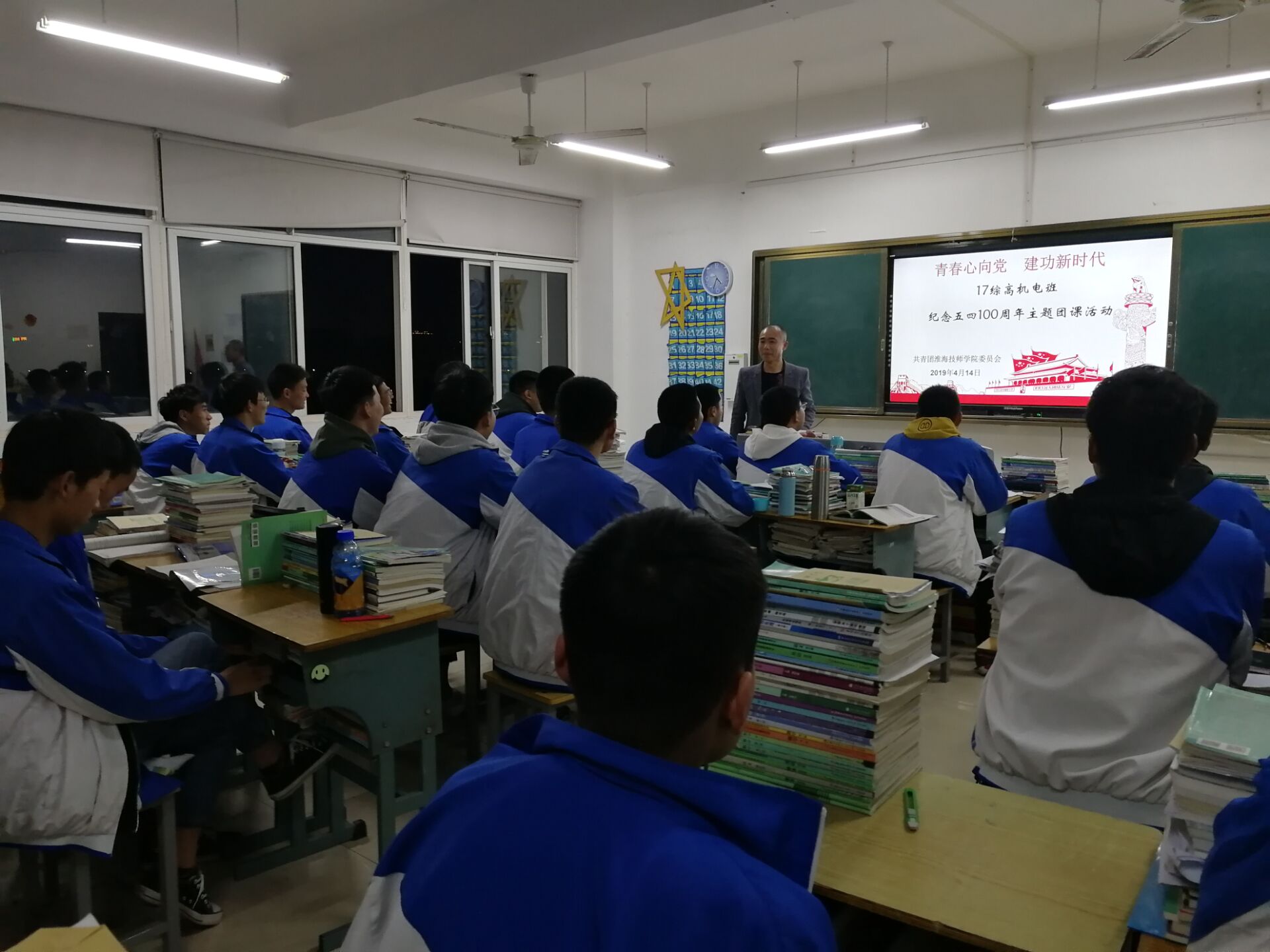 此次主题班会内容充实,形式多样。团委通过提前下发团课材料组织各班级规范介绍了五四运动的简要经过和历史意义,通过历史图片和视频资料的播放,让同学们直观的了解到100年前,青年学生奋勇报国的往事。各班级支部还组织团员代表介绍了自己对于这段历史的认识,有的班级围绕“落后就要挨打”、“少年强则国强”、“为中华之崛起而读书”等名言组织讨论,通过对五四精神的学习和认识激发大家的爱国热情和奋斗精神。