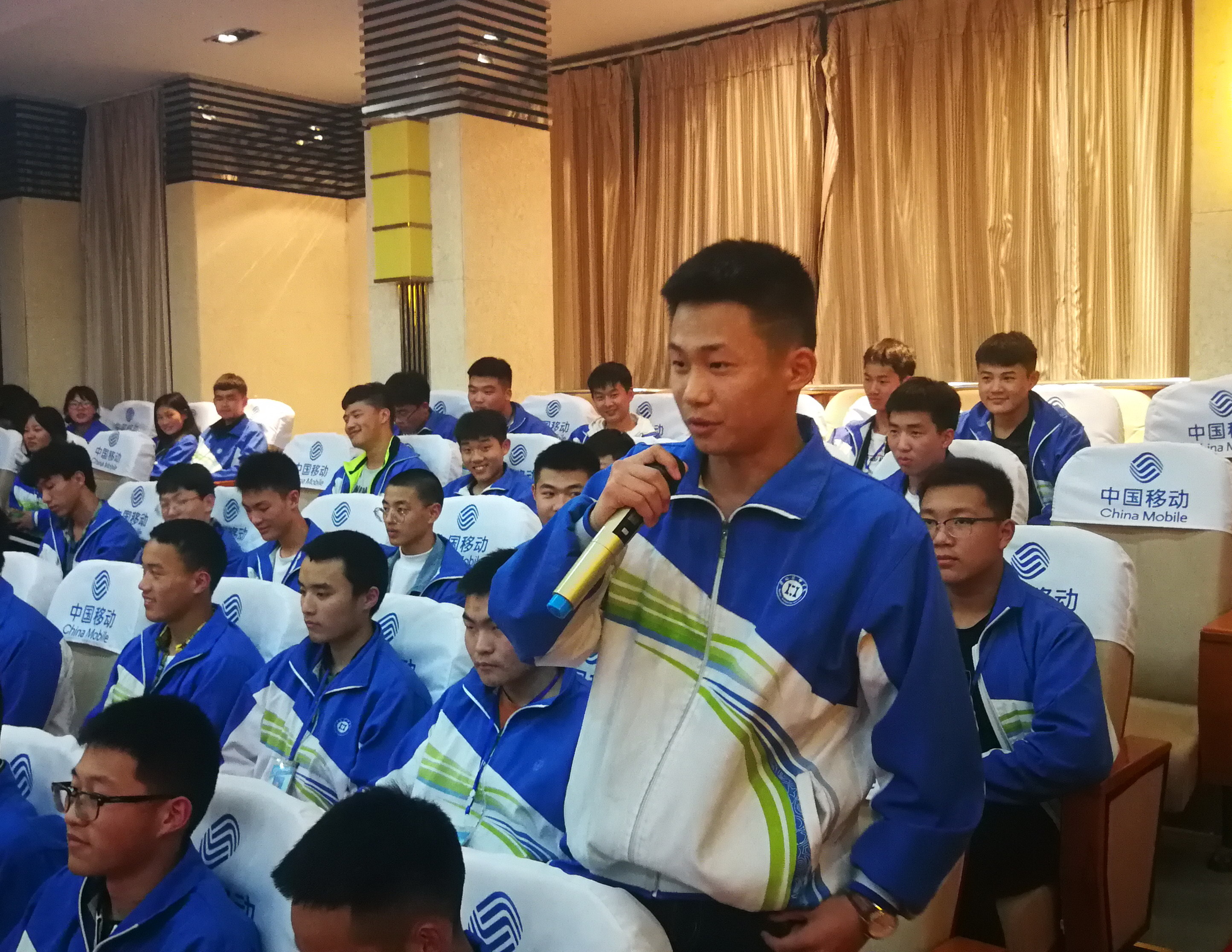活动在全场饱含爱国热情的《我和我的祖国》合唱中拉开帷幕,分四个部分开展。首先,与会所有团员同学观看了习近平总书记于4月30日在全国纪念五四100周年大会上的重要讲话,聆听总书记对广大青年的寄语和要求。随后来自各系部的团员代表进行关于新时代如何传承和发扬五四精神的讨论,并进行举手发言分享。大家纷纷表示时代发展赋予五四精神新的内涵和深度,但五四精神中所蕴含的青年自强,热忱报国的本质不会改变,是我们每个青年同学都应该牢记和践行的最高准则。