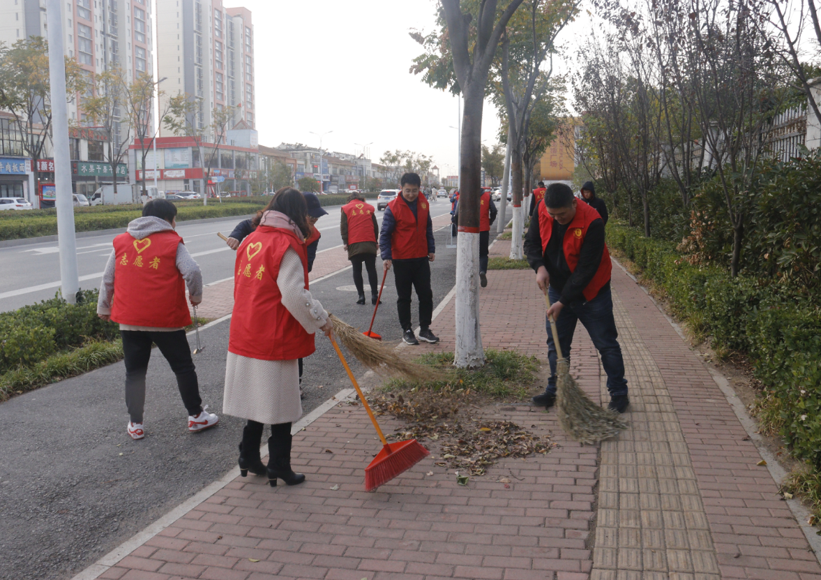 为落实学院“不忘初心、牢记使命”主题教育要求,积极配合我市文明城创建复检,有效解决道路及公共场所地面存在纸屑、烟头、垃圾等影响市容市貌的问题,11月18日下午,机关党支部组织全体党员到校园周边街道开展志愿者服务活动。