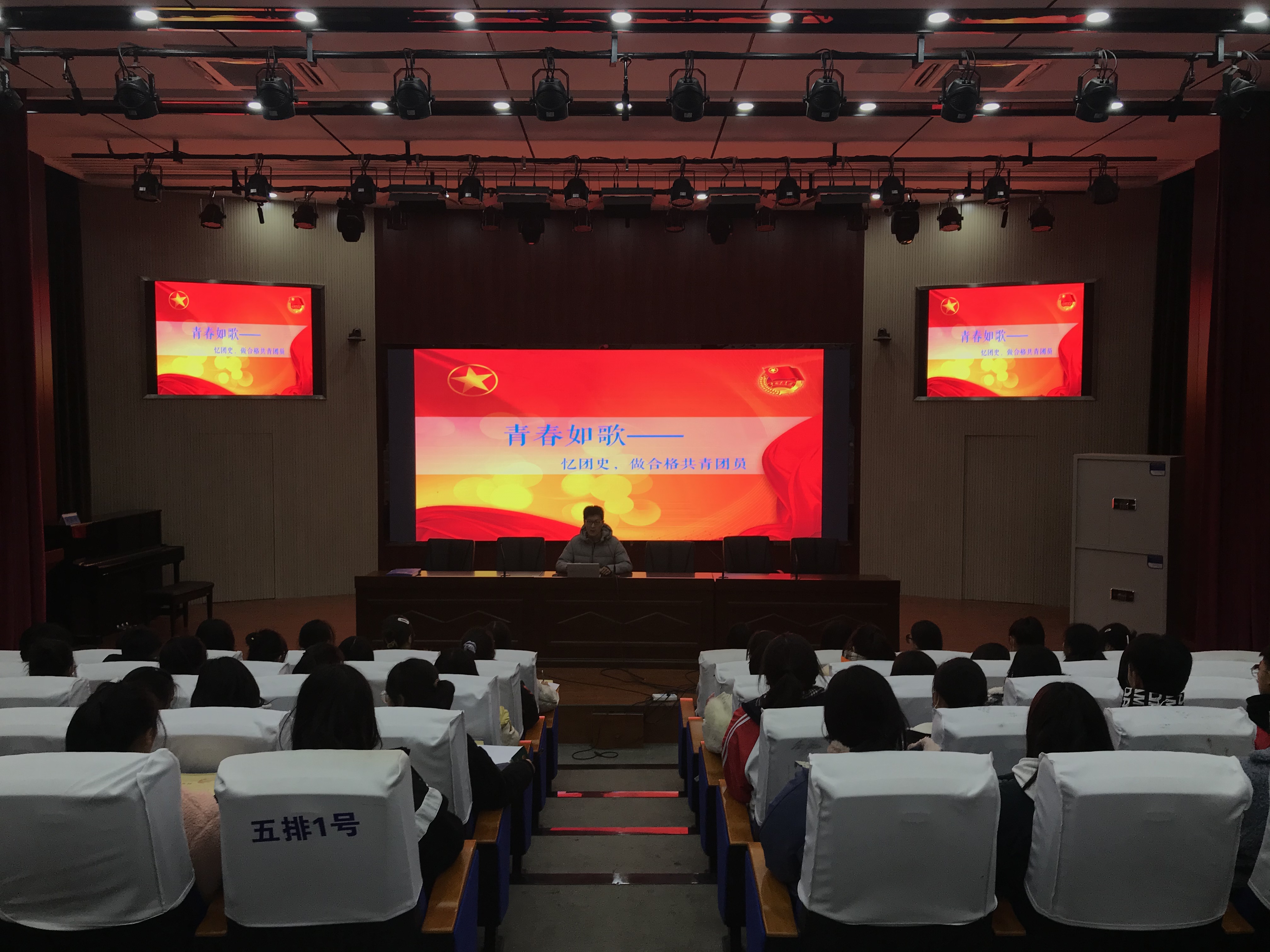 为引导广大青少年学生坚定理想信念,积极培育和践行社会主义核心价值观,深入了解团史团情,牢固系好人生第一粒扣子。11月23日,我院团委于蓝海剧场为2020年下半年新发展的50余名团员开展了主题为“青春如歌——忆团史,做合格共青团员”的“入团第一课”主题教育活动。