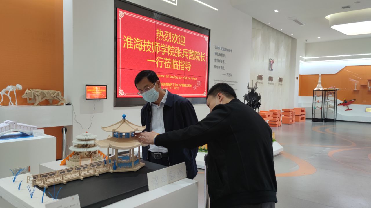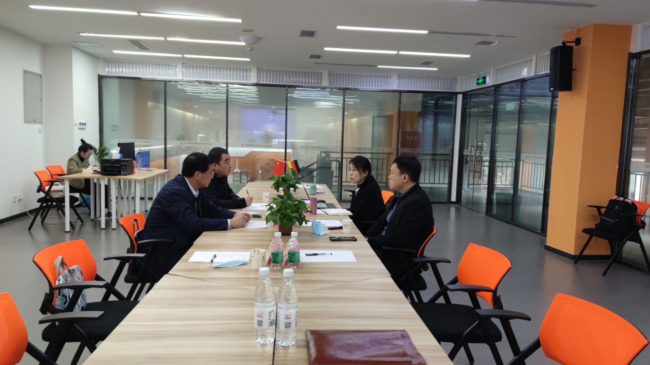 参观结束后,双方围绕产教融合项目、高技能人才培训、师资培训等方面开展座谈。刘宇详细介绍了中德职教联盟发展史,工业4.0相关的企业和职业教育资源,联盟与国内外院校合作开展的丰硕成果以及联盟未来发展前景等。张兵营简要介绍了我院中德合作办学、“金蓝领”高技能人才培训、国内外师资培训等开展情况,并以宿迁市“十四五”规划为依托,分析了学院在致力于为宿迁高端制造业、创新型产业发展中承担的高技能人才支持的重任。