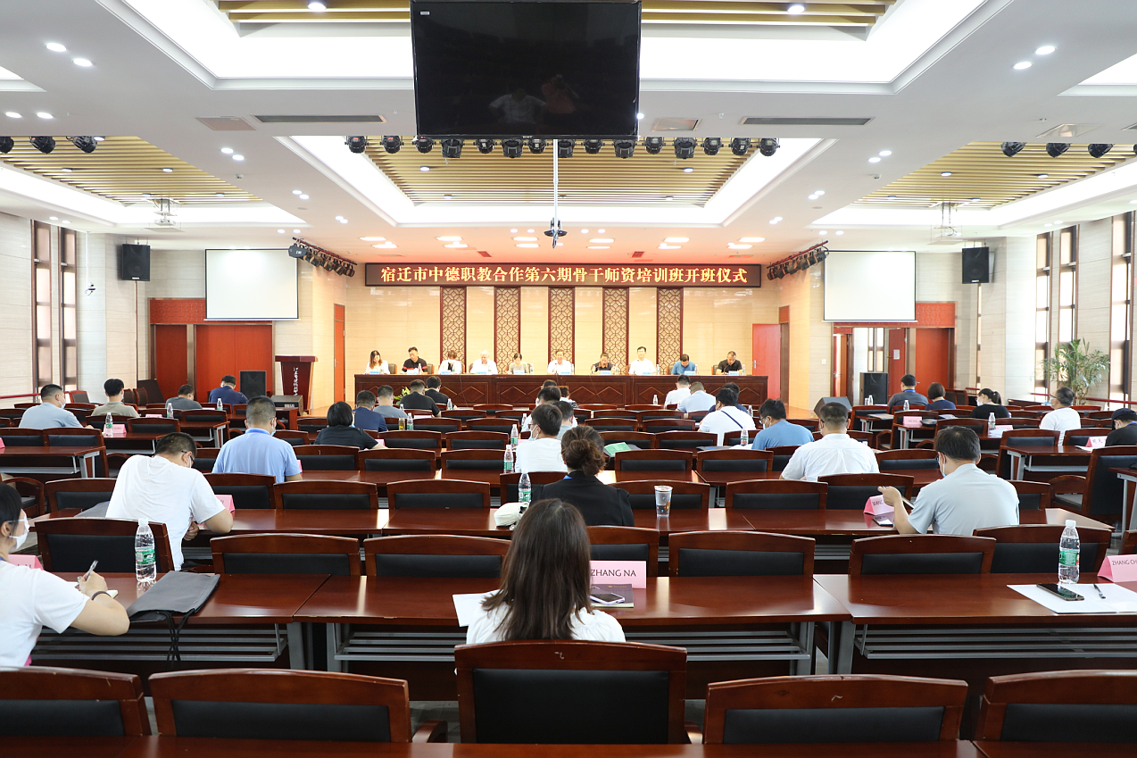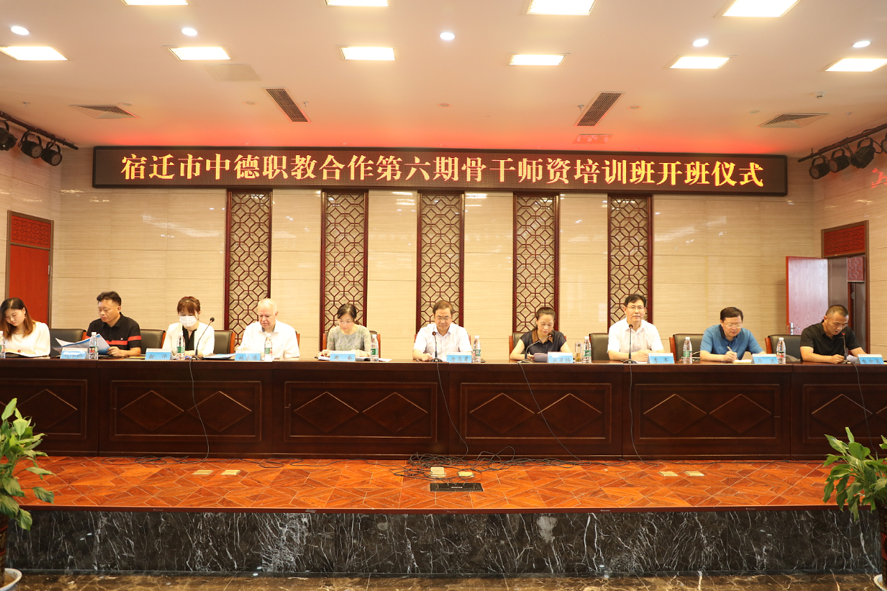 8月8日,宿迁市中德职教合作第六期骨干师资培训班在我院顺利开班。市人社局副局长唐厚晨,市教育局副局长、三级调研员龚显梅,市财政局副局长周会,市人社局职业能力建设处处长刘华伦,市职业教育与社会教育教研室主任毕进,学院副院长朱宇亮,德国讲师施泰德,中德职业教育产教融合联盟代表王湘茜,全市职技院校的40名骨干教师参加开班仪式。仪式由学院党委书记、院长李军主持。