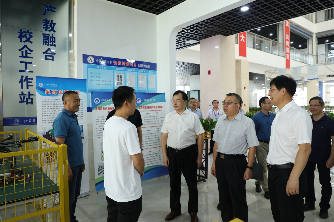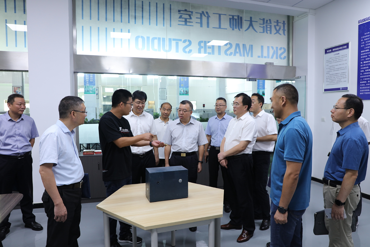 8月17日上午,省人社厅副厅长顾潮带领职业能力建设处处长李建方、省职业技能鉴定中心主任杨进保、技能教研中心副主任蒋金元、职业技能鉴定中心副主任李赟华等一行到我院调研指导工作。市人社局党组书记、局长钱信松,副局长唐厚晨,学院党委书记、院长李军及党委班子成员等陪同调研。