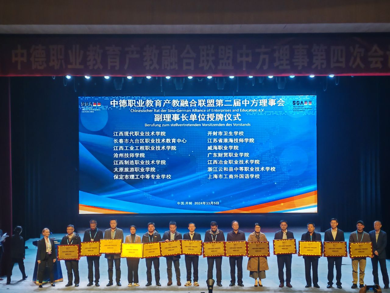 会上,我院凭借在职业教育领域的突出贡献和在中德合作方面取得的显著成效,被正式聘为中德职业教育产教融合联盟副理事长单位,并荣获中德职业教育与产教融合合作示范项目荣誉称号。这一殊荣不仅是对我院过去努力的肯定,更为未来的合作与发展奠定了坚实基础。