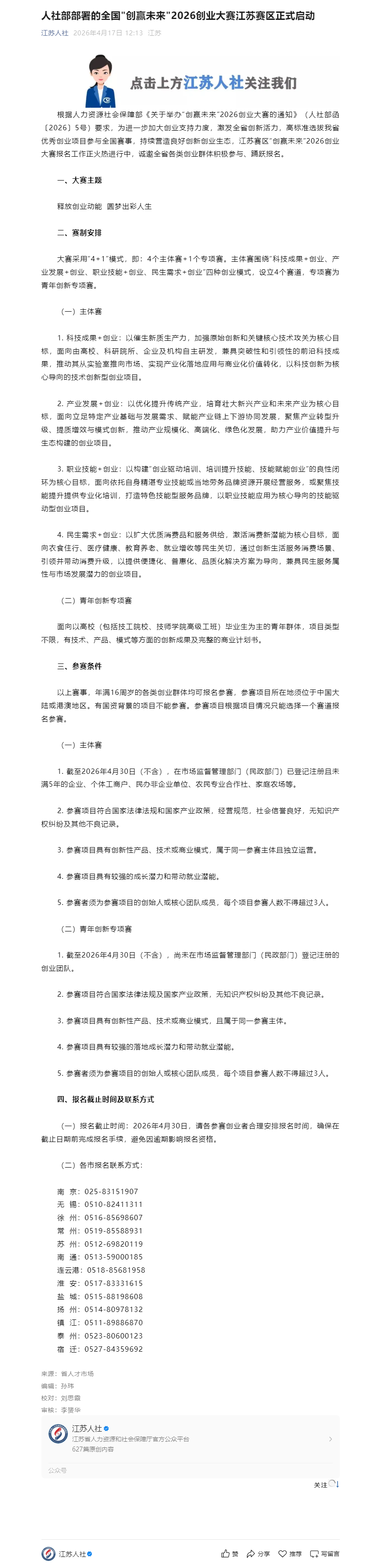 2026-04-18 09:54:00 来源:江苏人社 浏览量:1