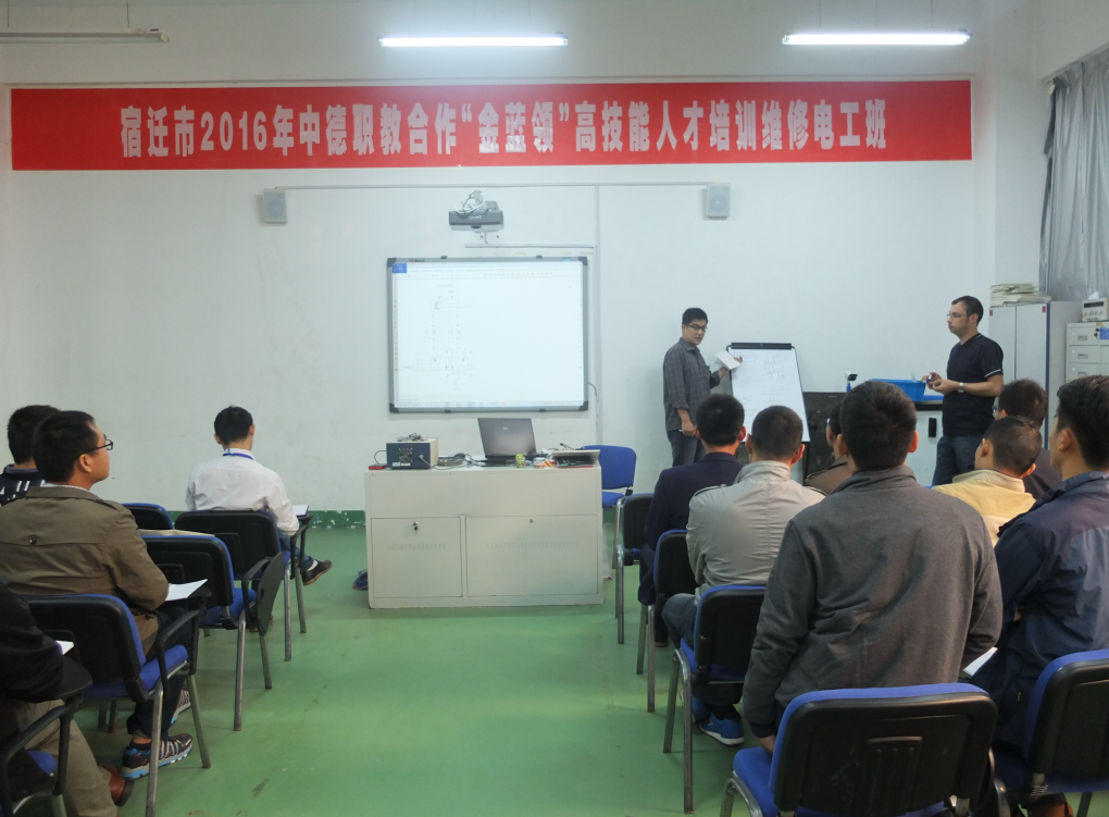 本次将举办数控技术和维修电工两个培训班,来自可成科技(宿迁)、可功科技(宿迁)、江苏洋河酒厂、双沟酒业、宿迁娃哈哈饮料等大型企业生产一线职业技术骨干工人、技术管理人员,全市职技院校专业骨干教师等共50人参培,全年共两期,上下半年各一期,每期3周。第一期培训获得了圆满成功,受到了各方的高度关注和好评。本期培训开拓了学员国际视野,提升了职业技能水平,考核合格后学员将获得德国工商业行会资质证书,该欧盟认证证书在全球范围内具有较高声誉,国际认可度高。