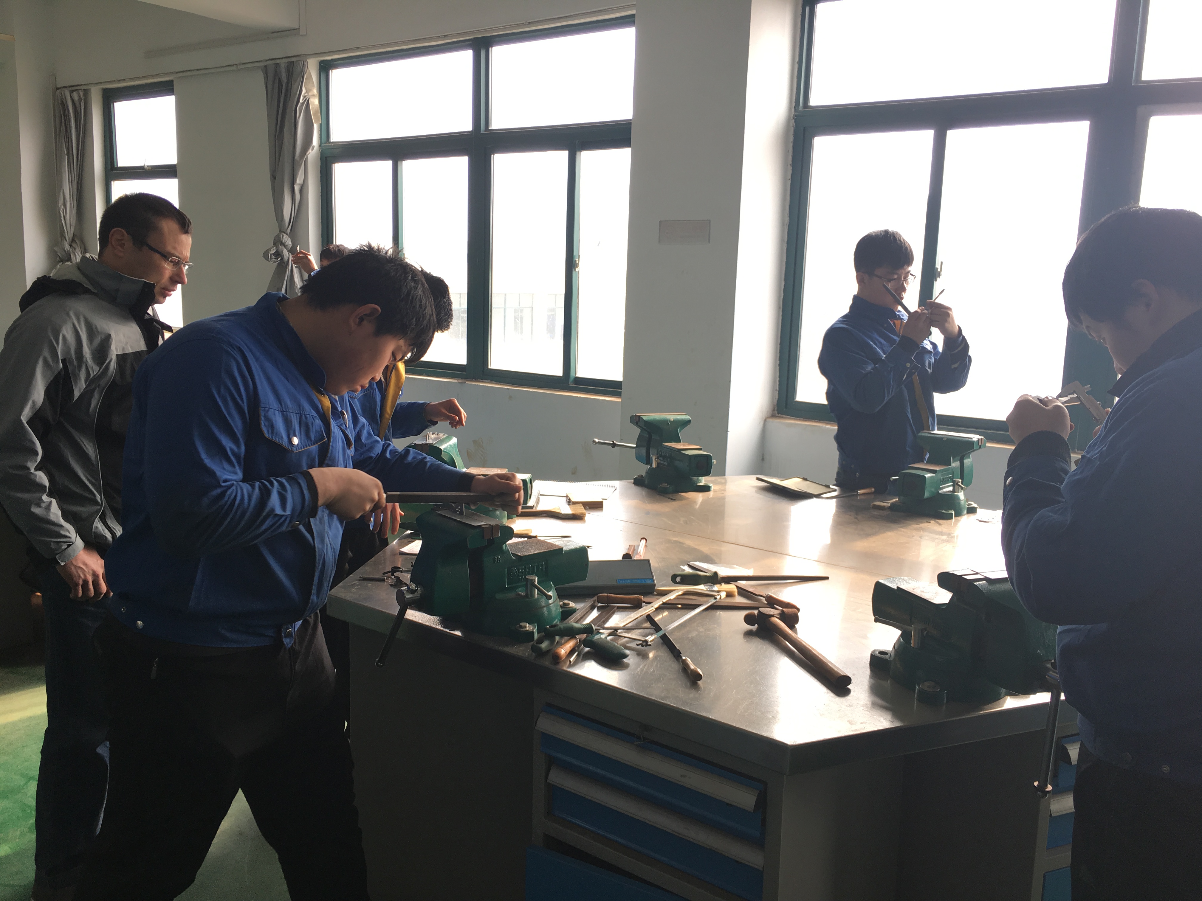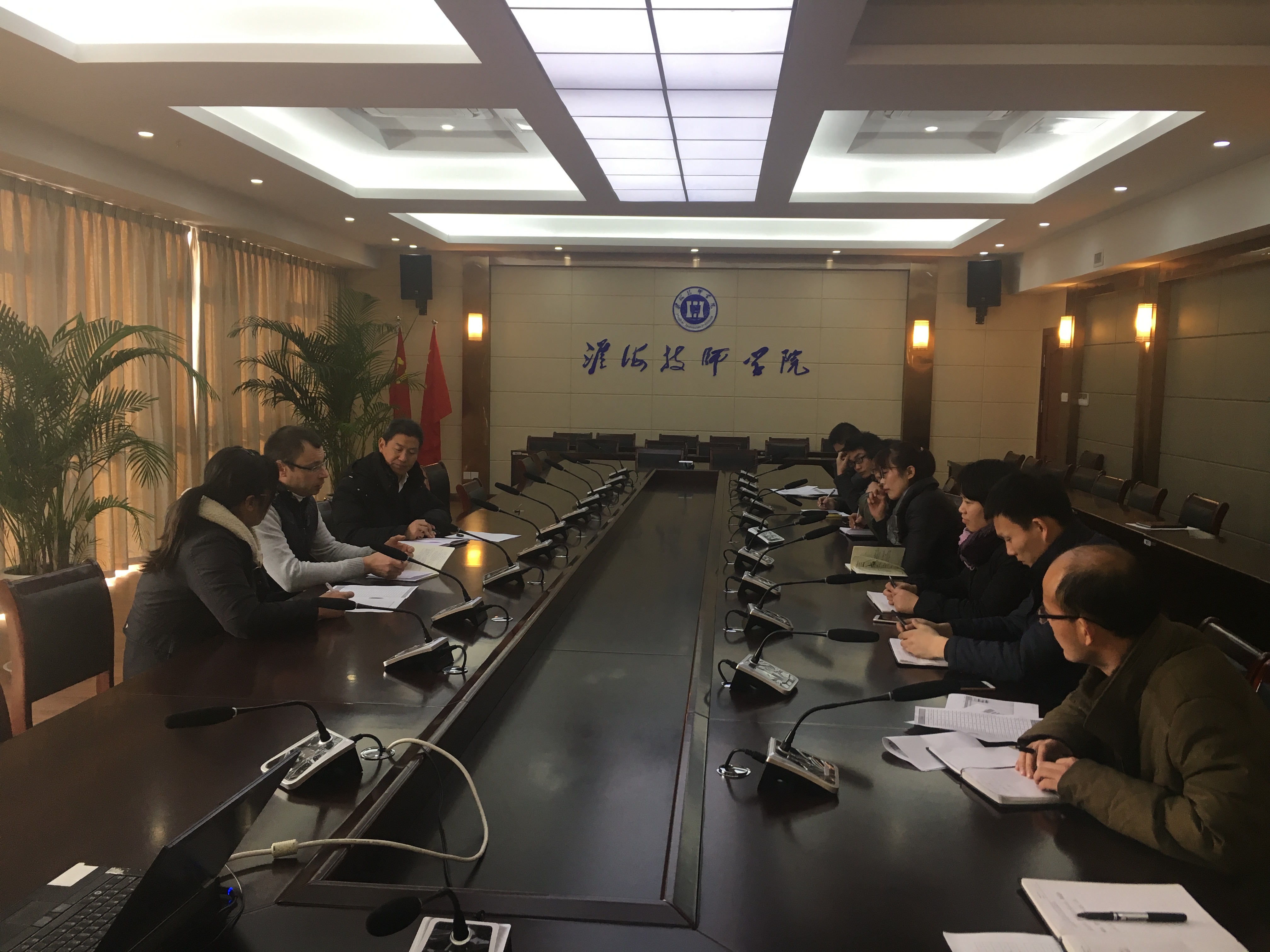 会议由学院分管同志陈元文主持。德国埃尔福特教育培训中心机电一体化考官英格·罗森布拉特,常州雅堂德中教育投资咨询有限公司教学主管,学院教务处、中外合作办公室、机电工程系负责人及中德国际班全体任课教师参会。