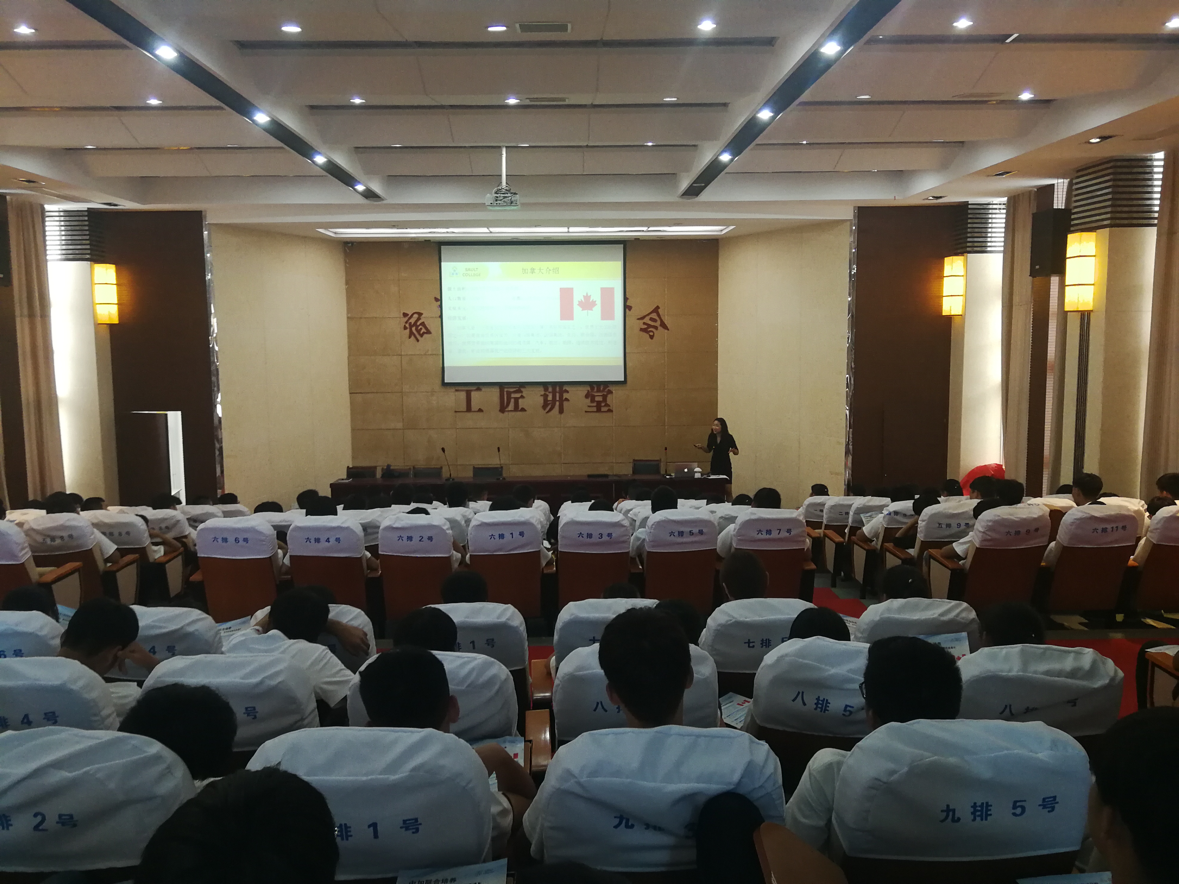 9月6日,加拿大瀑布学院中国代表处项目主管于双双一行应邀来院,为18级中加国际班学员以及来自工业机器人、计算机、智能制造等专业的近200名同学举行中加“直通车”项目宣讲会。