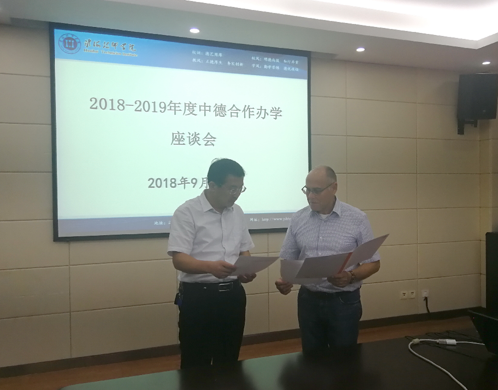 最后,双方围绕德语教学等若干问题展开会谈。不仅梳理了前期合作办学过程中凸显的问题,还就下一年度教学指导、工作计划拟定等达成共识,有力的推动了中德合作办学的良性发展。