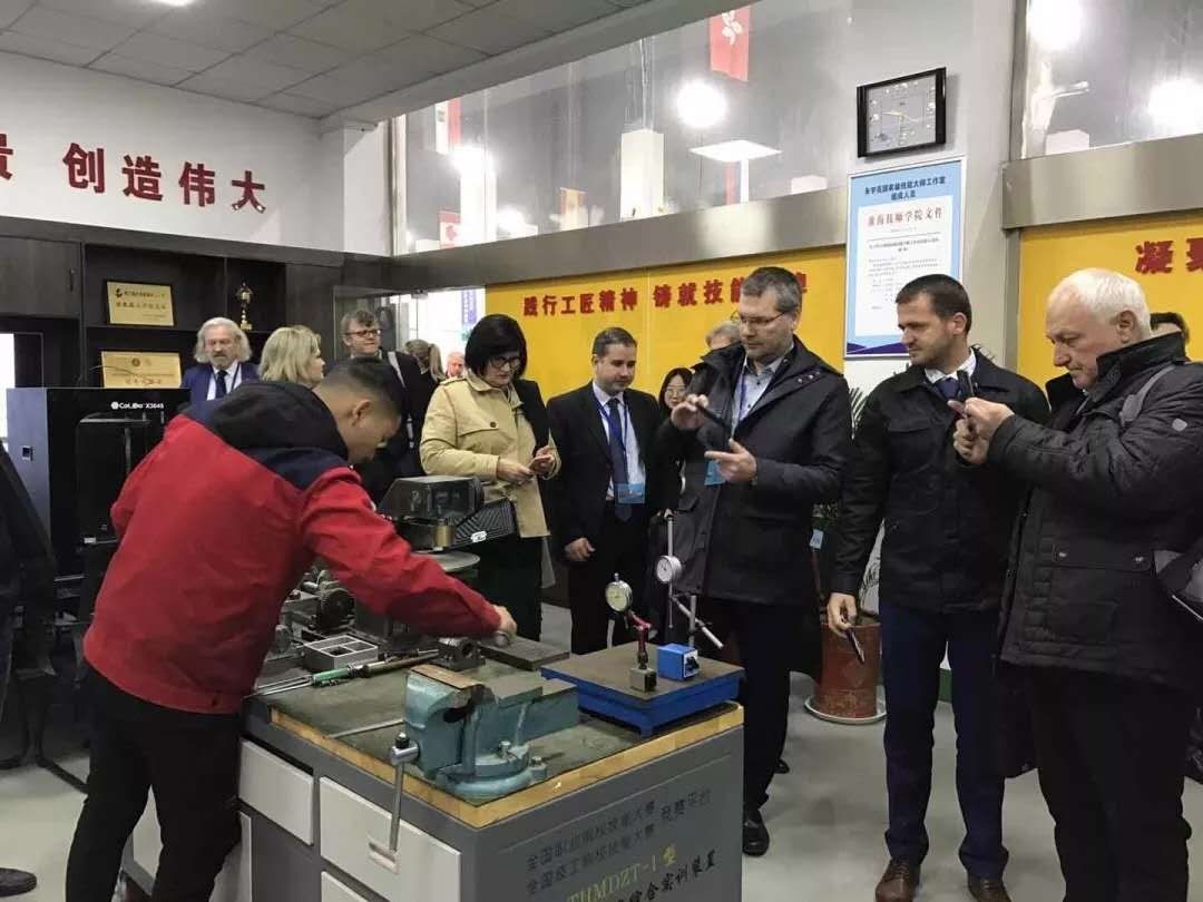 卡雷尔·拉伊斯一行实地考察了学院环境、数控加工实训中心、机械加工实训中心、财会实训中心、汽车检测与维修实训中心、机电实训中心等地,还特别到中德国际班、财会实训点钞及汽车喷涂教学现场等进行了观摩。王治代表学院对捷克代表团的到访表示热烈欢迎,他简要介绍了学院近几年的发展情况,详细讲解了学院专业建设、课程与教材的开发、专业教师的培养、实训基地建设、校企合作、中外合作、社会培训等情况。卡雷尔·拉伊斯会长对我院在发展职业教育方面做出的努力表示肯定,对我院开展的中德“金蓝领”高技能人才培训和中德合作办学等项目赞不绝口。他表示,学院基础建设完备、配套设施良好、发展前景广阔、市场潜力巨大。