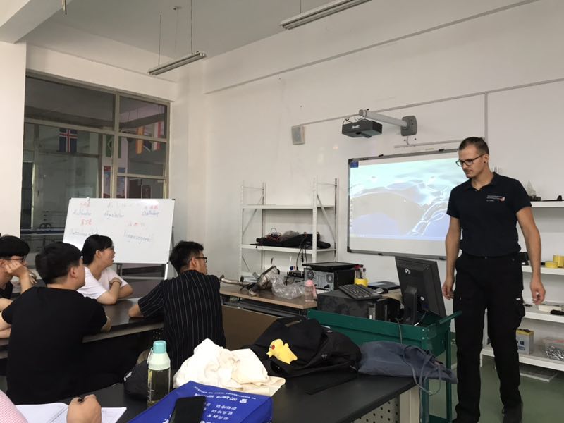 自2019年9月2日抵达我院后,HWK(德国手工业行会)指导讲师菲利普•舍勒便开始了对我院中德国际汽修班为期一月的教学指导。