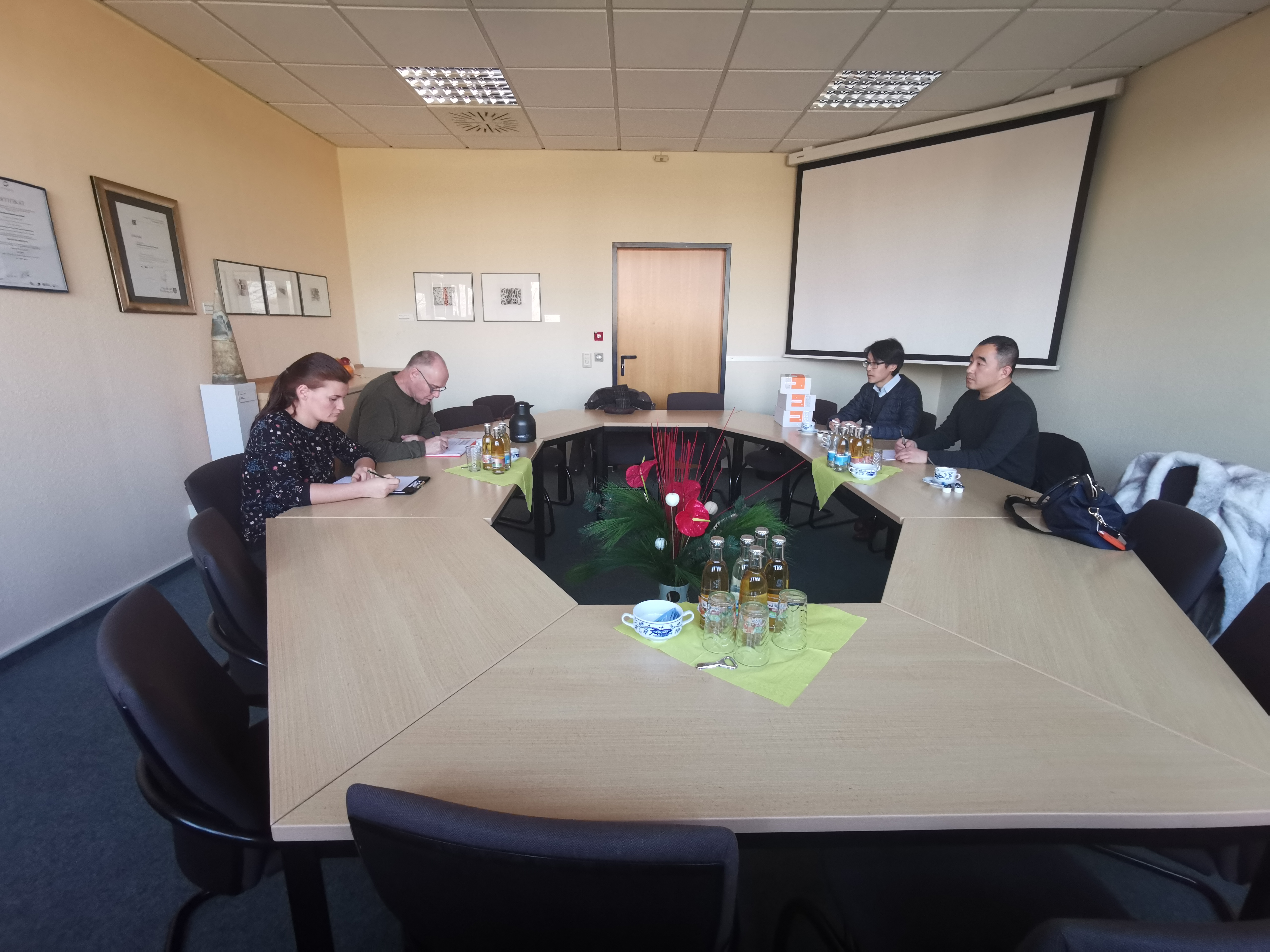 12月5日,受德国埃尔福特市手工业行会(以下简称HWK Erfurt)邀请,我院赴德参加2019年度合作项目总结会。我院中外合作办公室负责人汪啸参会。HWK Erfurt经理布克罗伊斯、国际项目主管雷拜,雅堂德中教育咨询有限公司董事长张琳、德国德智教育咨询有限公司总经理张皓等参会。