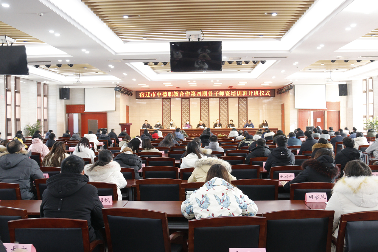 1月18日上午,宿迁市中德职教合作第四期骨干师资培训班在我院顺利开班。市人社局党组成员、三级调研员、市考试鉴定中心主任张永生,市教育局副局长龚显梅,市科技局副局长张龙,市财政局社保处处长陆裕梅,市人民政府外事办公室涉外处处长祁小辉,淮海技师学院院长张兵营,德国工商业行会培训师、跨文化职业教育研究中心高级顾问亚历山大·克拉姆,德汉灵中德职业教育与培训中心高级经理陈虹,全市30名参培学员等参加开班仪式。开班仪式由张永生主持。