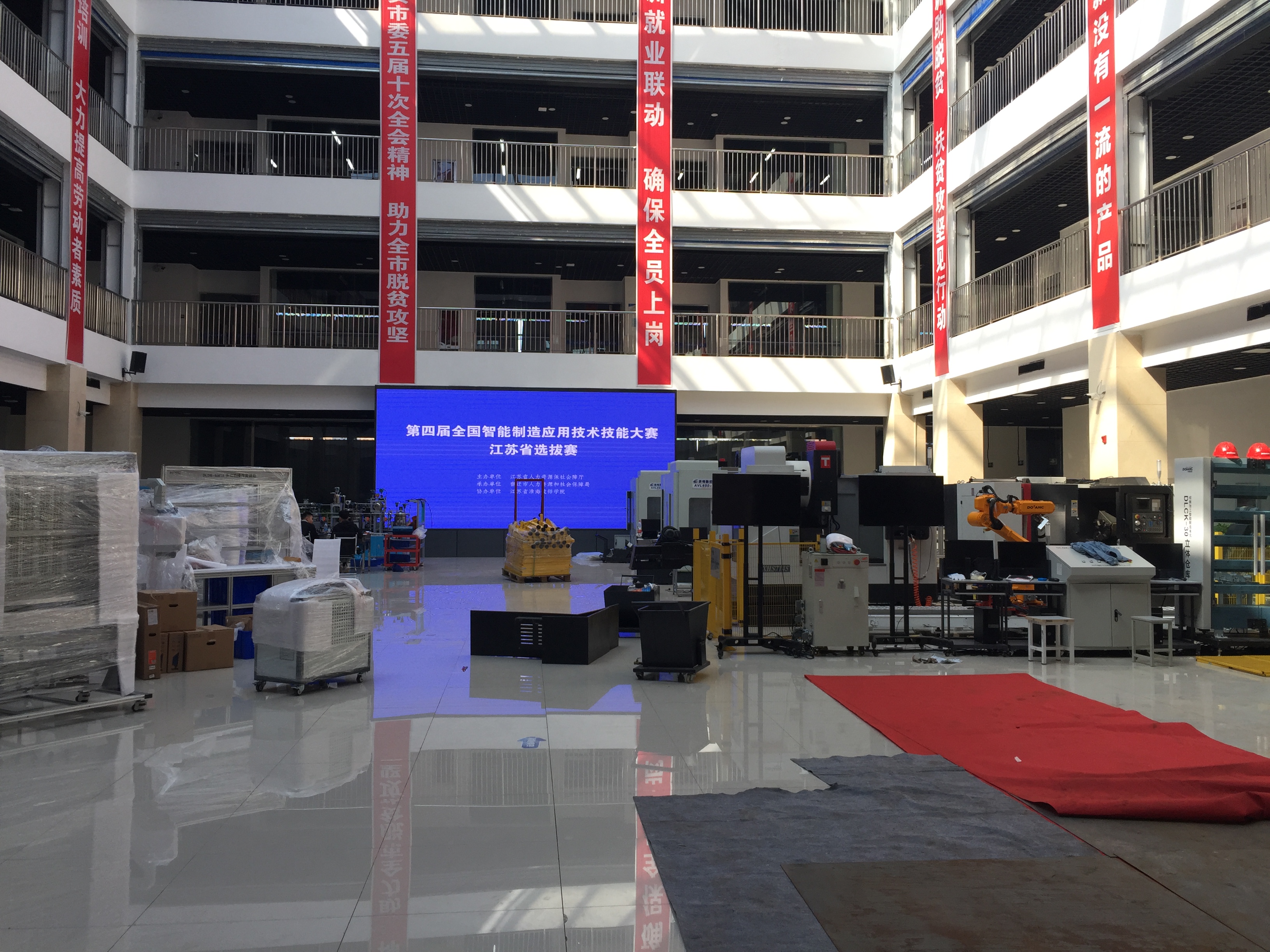 目前,各赛项设备正在有序进场、安装、调试,在多方的支持和共同努力下,各项准备工作均在有条不紊地进行。