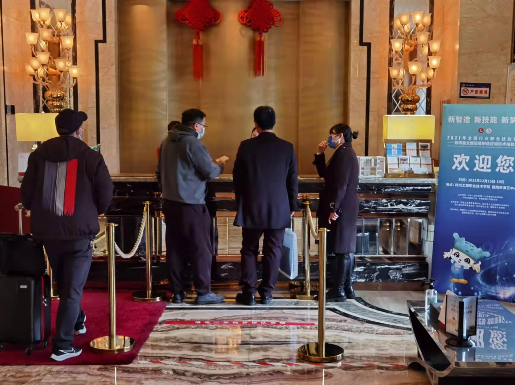 12日晚,我省代表队选手陆续抵达德阳,在保障团队和大赛组委会志愿者的热情指引下,乘坐摆渡车到指定住宿酒店,积极配合安装四川天府健康通和德阳市民通、填报相关信息、领取大赛材料,并按照当地的疫情防控要求,不顾旅途劳累,于当晚9点30分,集中进行了核酸检测,井然有序地完成了报到工作,展现了我省选手的精气神。