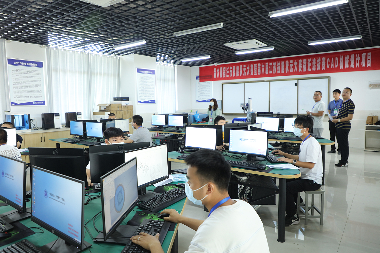 本次大赛由宿迁市人社局主办,分为职工组和学生组2个组别,为期2天,设置了新能源汽车智能化技术、电气装置、3D数字游戏艺术、烘焙、机电一体化、中式烹调、无人机应用技术、电工、焊接、汽车技术、CAD机械设计、装配钳工等12个赛项。