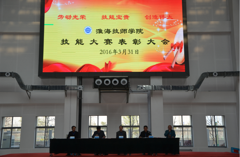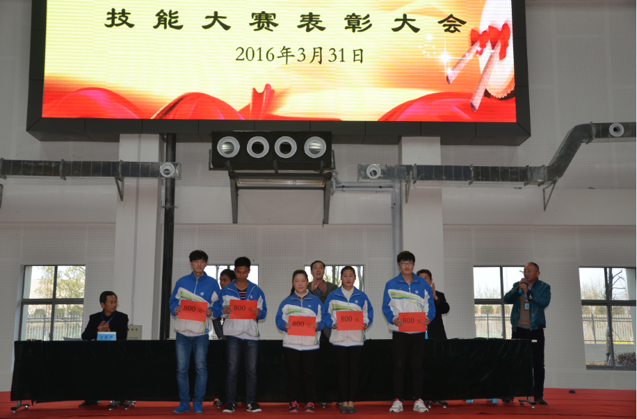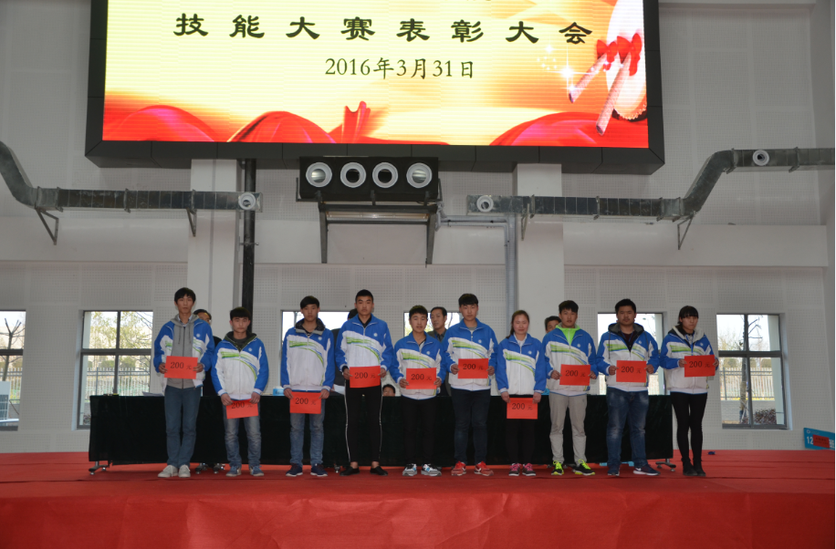 首先,陈元文同志对我院学生近两学期参加省市级和院级技能大赛情况进行了总结,接下来,胡柯同志宣读了近两学期参加省市和学院层面技能大赛获奖同学的表彰决定,院领导对参加省级、市级、院级技能大赛获奖选手颁发了奖金和荣誉证书。其中龚亚宁、程翔、沙剑波三名同学荣获“淮海技师学院拔尖人才”荣誉称号;单文博、陈省会、蔡玉青三名同学荣获“淮海技师学院技术能手”荣誉称号。蔡玉青同学代表获奖选手发表了获奖感言。最后副院长王治同志对近500名获奖选手表达了祝贺,并对技能大赛备战选手提出殷切期望:一要敢于吃苦;二要勤学苦练;三要充满信心。