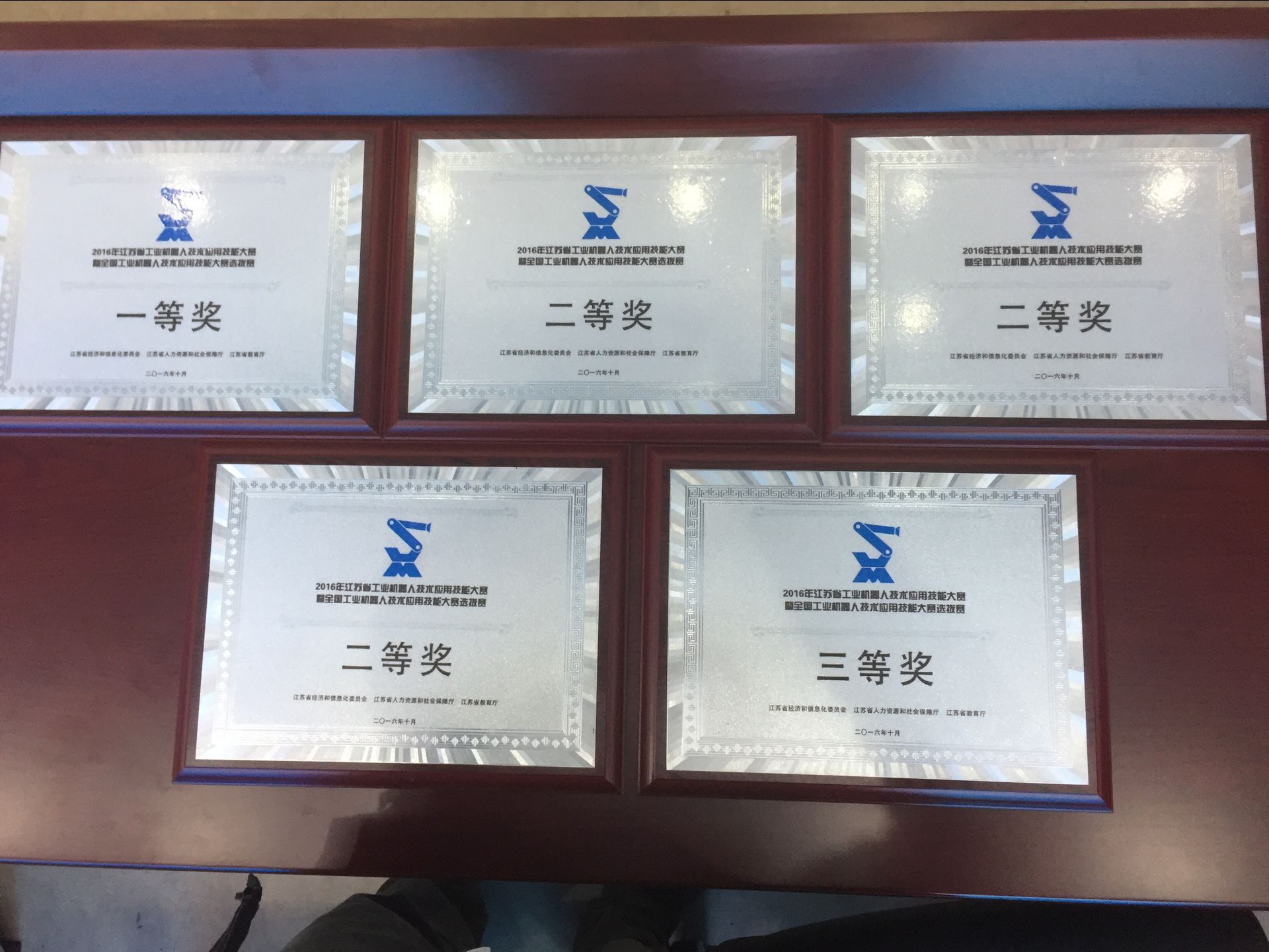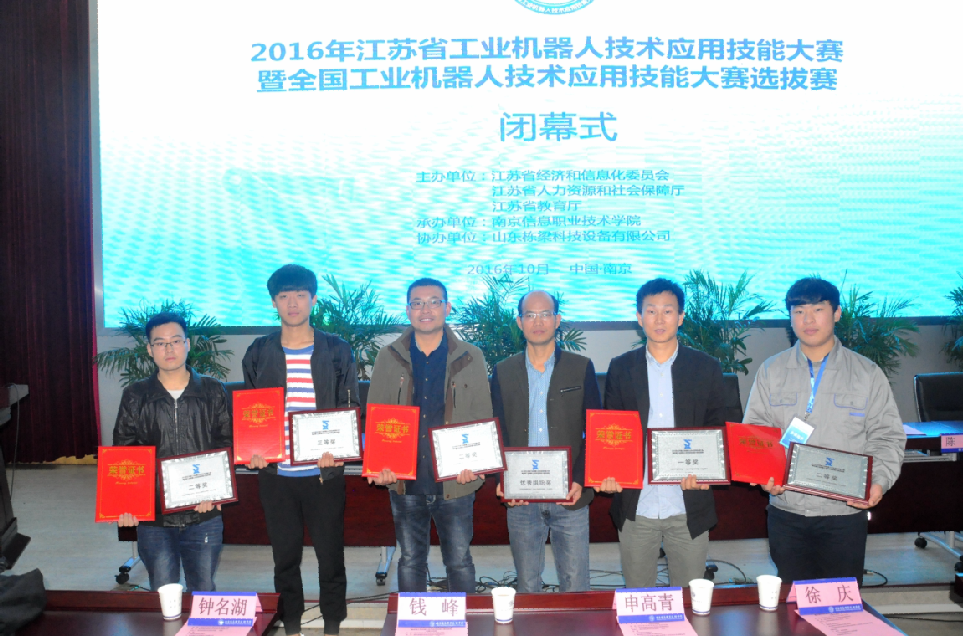 10月25日至28日,首届江苏省工业机器人技术应用大赛暨全国工业机器人技术应用大赛选拔赛在南京举行,我院选派机电工程系付帅、刘冬等五名师生参加了本次大赛。经过三天的艰苦、全封闭比赛,我院喜获一个一等奖、三个二等奖、一个三等奖,学院获得“优秀组织奖”荣誉称号。