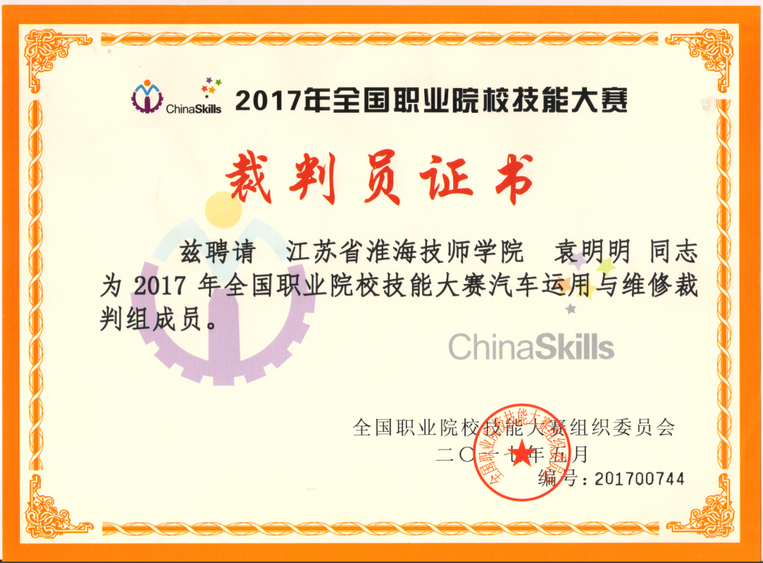 在接到国赛裁判员工作通知的时候,袁明明老师能严格遵守保密协议,不向他人透露自己的裁判员身份,他遵照裁判工作手册要求,坚持公平、公正原则,严格执行竞赛规则,圆满完成了大赛组委会安排的执裁任务。