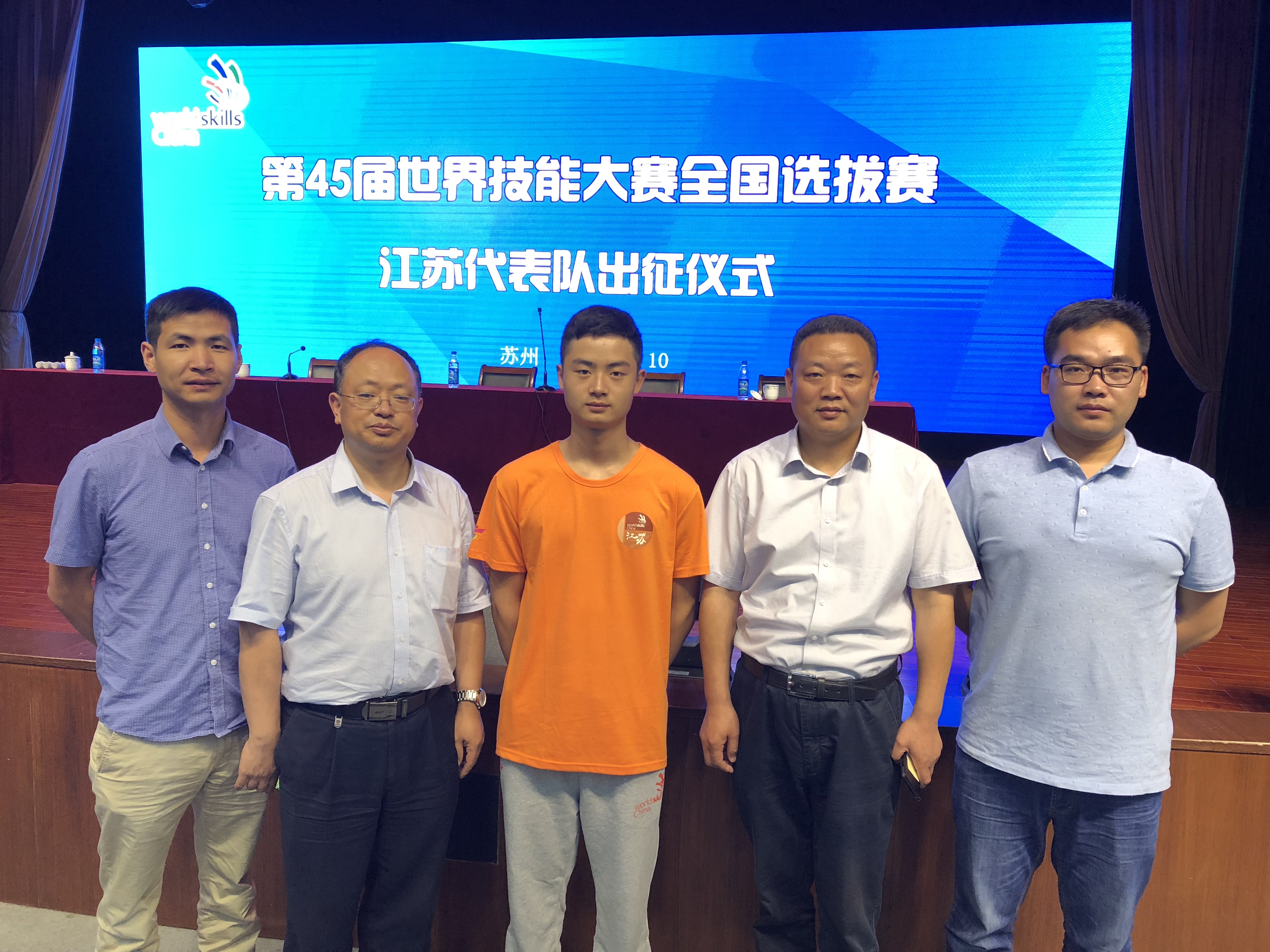 第45届世界技能大赛全国选拔赛江苏代表队出征仪式于6月10日在苏州举行,我院选手王宇航在市人社局和学院相关领导及指导老师的陪同下参加了出征仪式。