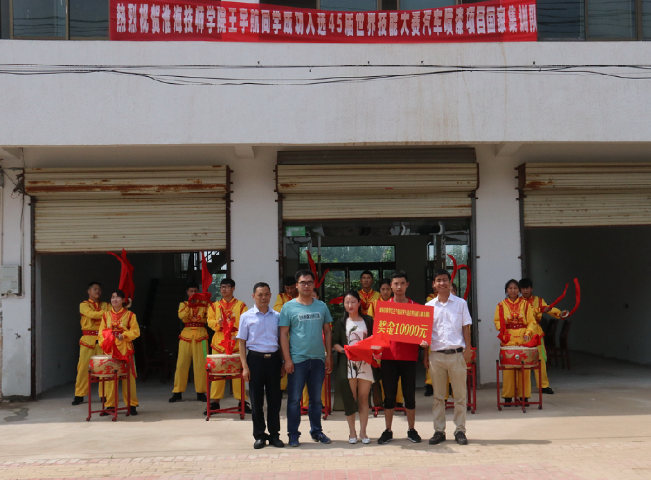 在第45届世界技能大赛江苏省选拔赛和全国选拔赛中,王宇航、程杰均取得了骄人的成绩。程杰同学获得了江苏省选拔赛汽车喷漆项目第一名,王宇航同学成功入选第45届世界技能大赛汽车喷漆项目国家集训队。宣传的锣鼓声很快将喜讯传遍整个街道、村庄,引得左邻右舍纷纷前来观看,大家十分好奇都纷纷上前询问。老师们与他们热情的交谈,介绍学生在第45届世界技能大赛江苏省选拔赛和全国选拔赛中取得的骄人佳绩及获奖的奖励政策。获奖的同学受到了大家的连声赞扬,并表示将再接再厉,争取更好的成绩。