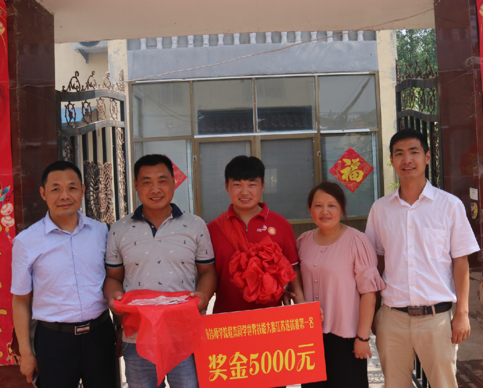 6月21日,喜庆的鞭炮声、喧天的锣鼓声,让龙河镇朱大兴村和罗圩镇西长庄村变得热闹非凡。在邻里乡亲羡慕的眼神中,我院汽车工程系负责人陈伟和指导教师袁明明一行,将喜报送到第45届世界技能大赛选拔赛成绩突出的王宇航和程杰的家中。整个活动过程中,选手家长脸上乐开了花,喜悦之情溢于言表。